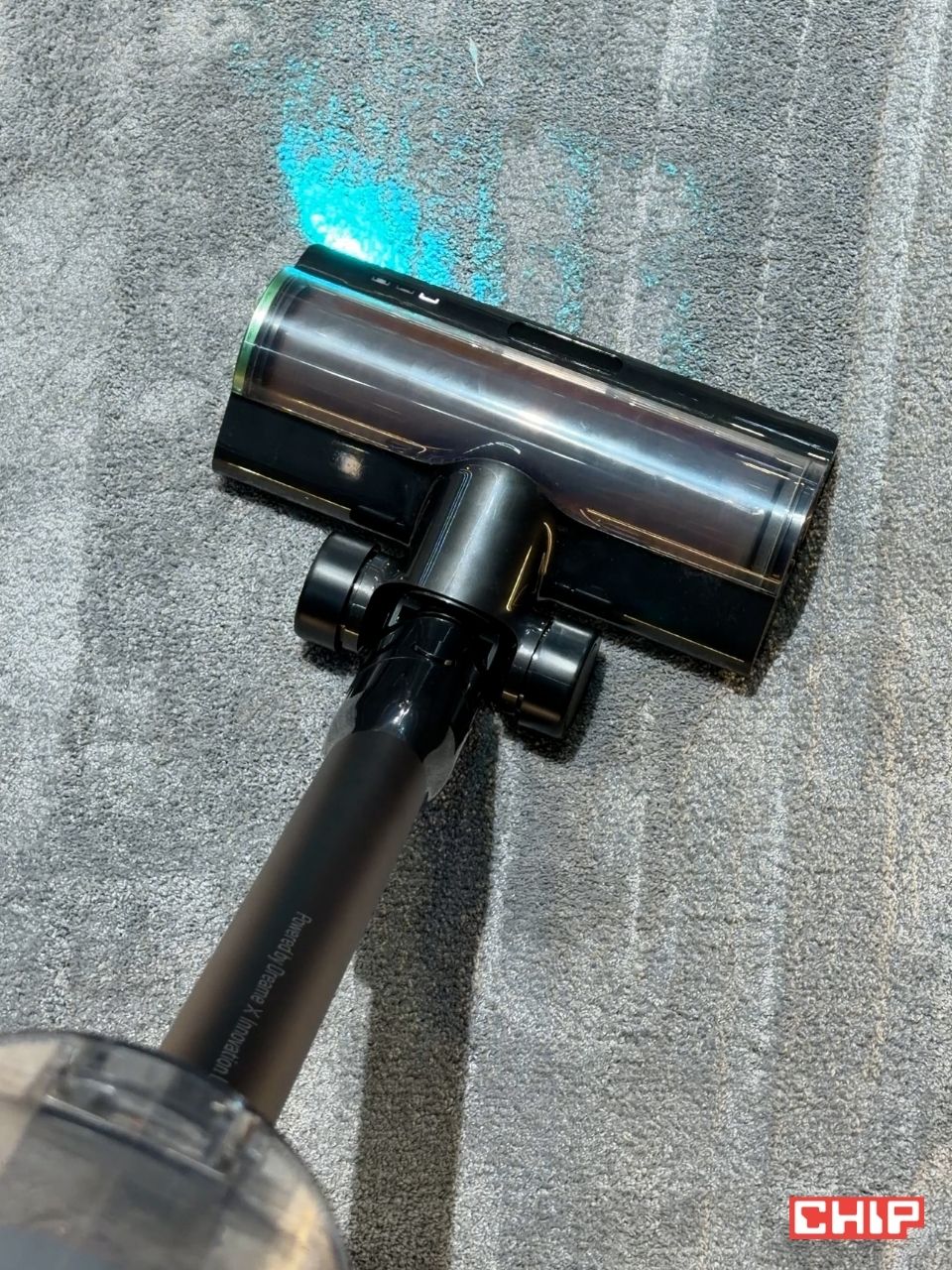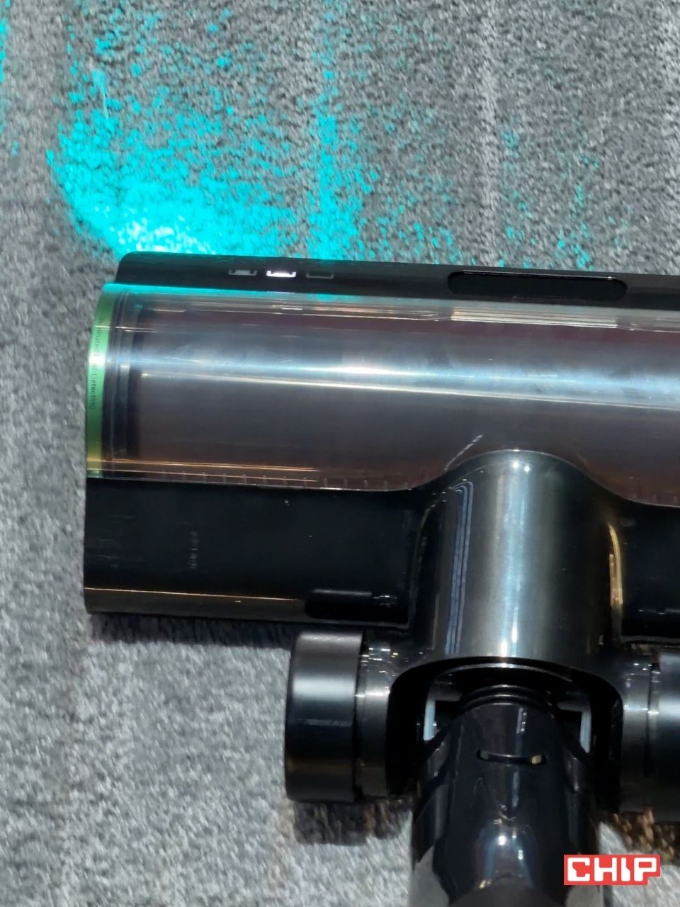 Drugi element to stacja dokująca, która pełni rolę magazynu narzędzi. Znajdują się w niej dodatkowe końcówki, między innymi dysza do szczelin i szczotka do listew, a robot potrafi samodzielnie je wymienić, zamontować i użyć w konkretnych miejscach. To przesunięcie myślenia z jednej szczotki i jednego mopa, na dobranie odpowiedniego narzędzia do aktualnego zadania, czyli krawędzi, szczelin czy narożników.