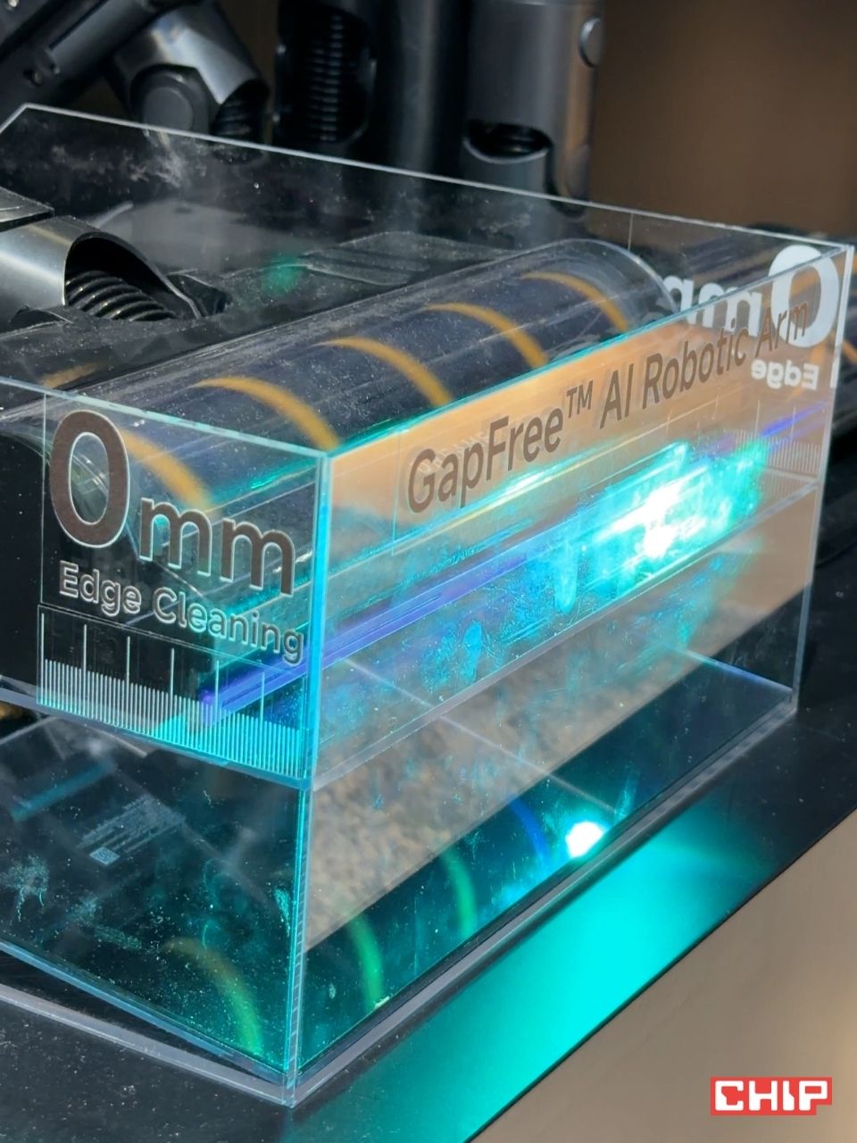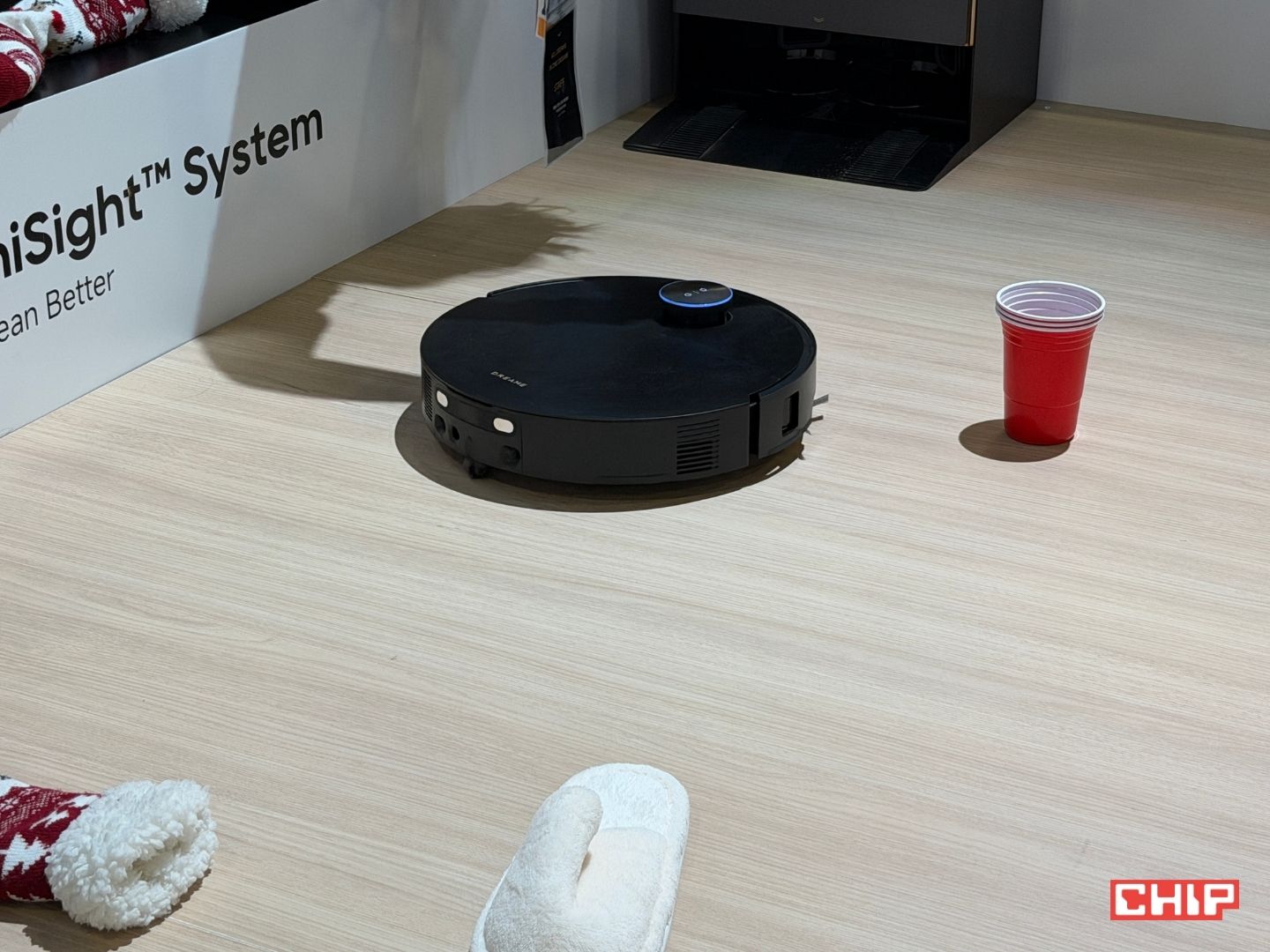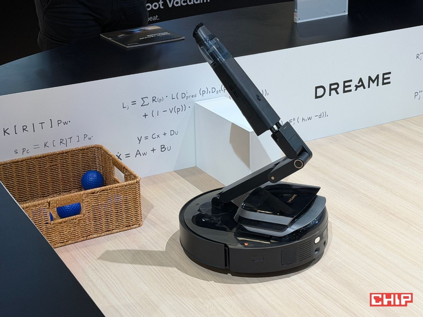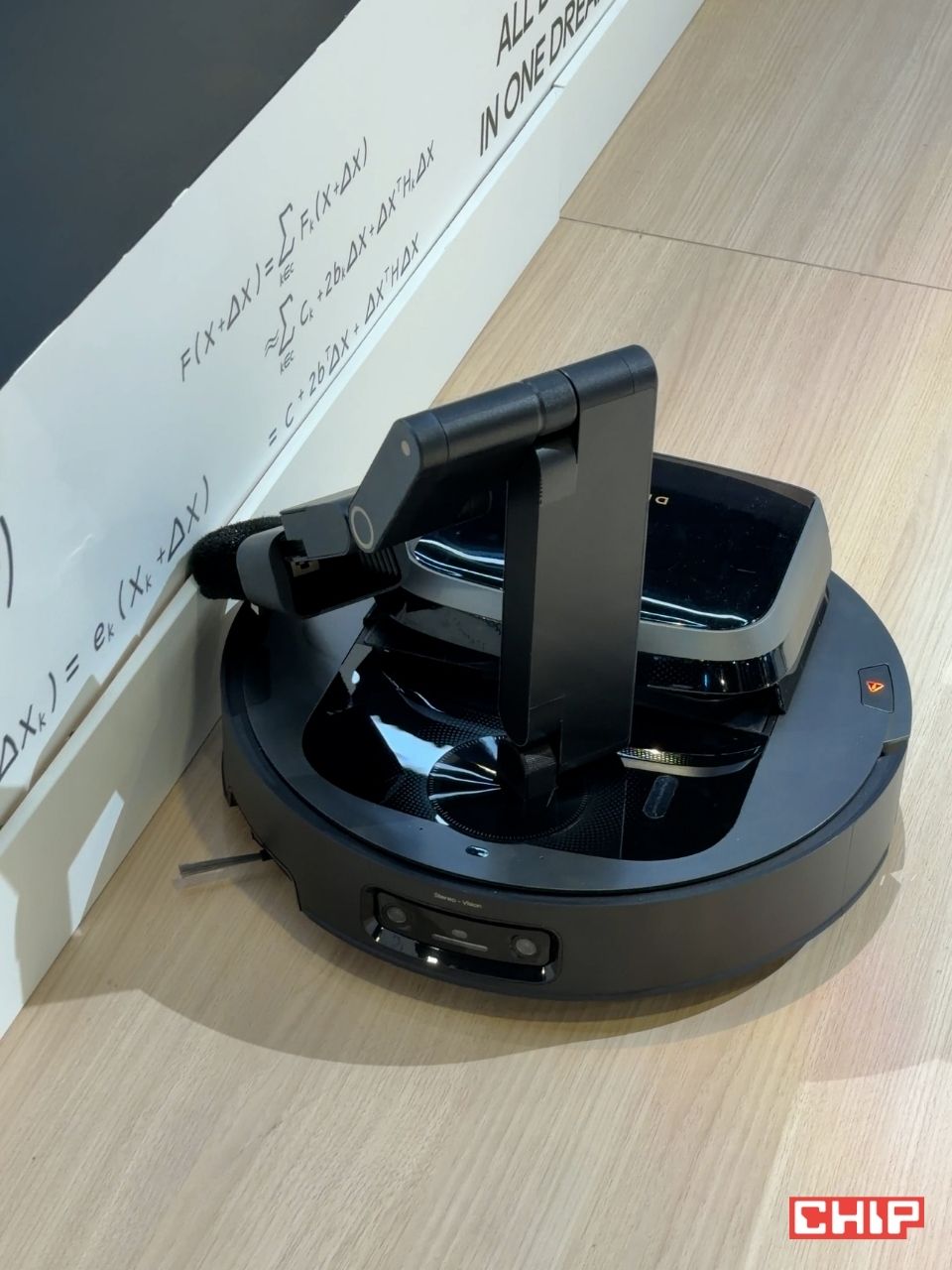 Cyber10 Ultra jest tą premierą, która na targach przyciągała wzrok natychmiast, bo zamiast kolejnego podbicia mocy, dostajemy robota z wieloprzegubowym, wysuwanym ramieniem schowanym pod pokrywą. Dreame komunikuje udźwig do 500 g, a cały pomysł jest prosty — robot ma lepiej odnajdywać się w mieszkaniach, w których podłoga nie jest zawsze idealnie pusta. Czyli w prawdziwych mieszkaniach.