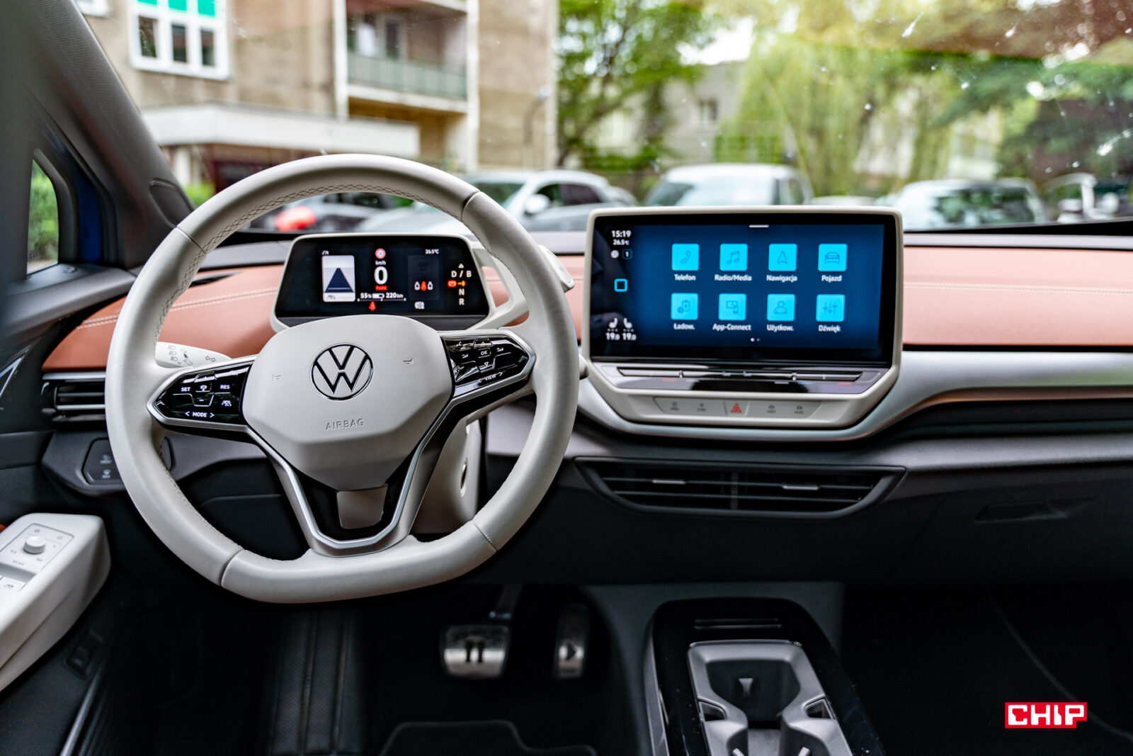 W najnowszych modelach Volkswagen zaczął wracać do fizycznych przycisków. Pierwszym zwiastunem był model Tayron, w którym na kierownicę wróciły klasyczne guziki. Powyżej widzicie kierownicę z Tayrona, a tak wygląda to choćby w ID.4: