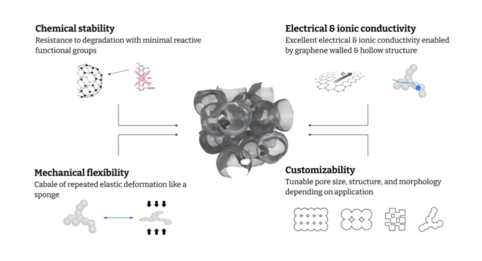 Sednem wynalazku jest jego unikalna struktura. Graphene MesoSponge (GMS) przypomina mikroskopijną gąbkę, której ściany mają grubość zaledwie jednego atomu węgla. Jest to zasadnicza różnica w porównaniu z płaskimi arkuszami grafenu, które są badane od lat. Trójwymiarowa, porowata sieć tworzy wewnątrz materiału swego rodzaju autostradę dla elektronów, a dzięki tej architekturze elektrony mogą się przemieszczać znacznie swobodniej niż w konwencjonalnych elektrodach. Można to porównać do zamiany wąskich, zakorkowanych uliczek na wielopasmową drogę ekspresową.