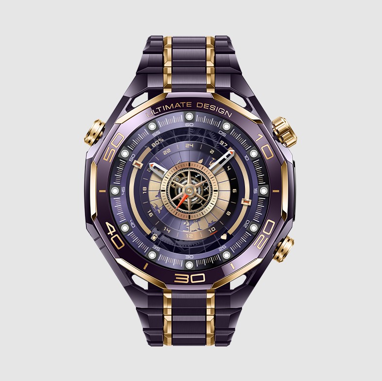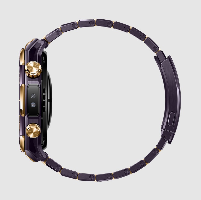 Nowy wariant Royal Gold odróżnia się od swojego poprzednika odważną, fioletowo-złotą kolorystyką. Huawei nie oszczędzało na materiałach – kopertę wykonano z ciekłego metalu na bazie cyrkonu, który jest nie tylko niesamowicie twardy, ale też odporny na korozję, co ma kluczowe znaczenie przy kontakcie ze słoną wodą. Co ciekawe, mimo solidnych materiałów, konstrukcja jest stosunkowo lekka dzięki zastosowaniu wydrążonej struktury obudowy.