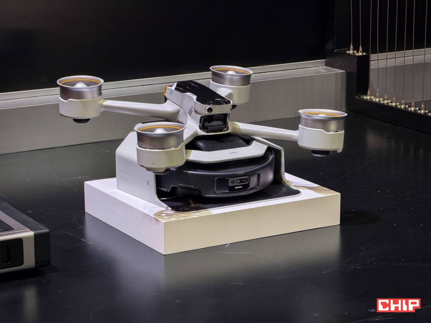 Największą gwiazdą podczas tegorocznych targów CES był Pilot 70 — latający moduł, który ma podejść w zaskakujący sposób do problemu schodów w domach piętrowych. Zamiast liczyć na rampy, dodatkowe roboty czy ręczne przenoszenie urządzenia, pomysł jest bezpośredni i szalony — ten robot sprzątający lata.