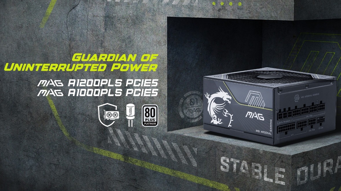 Nowa generacja zasilaczy MSI wyposażona jest w technologię GPU Safeguard+, która na bieżąco monitoruje napięcie w złączu 12V-2×6 i ostrzega użytkownika w przypadku wykrycia anomalii. Modele MPG Ai1600TS i Ai1300TS PCIE5 oferują najwyższą sprawność na poziomie Titanium, a MAG A1200PLS i A1000PLS PCIE5 – certyfikat Platinum.