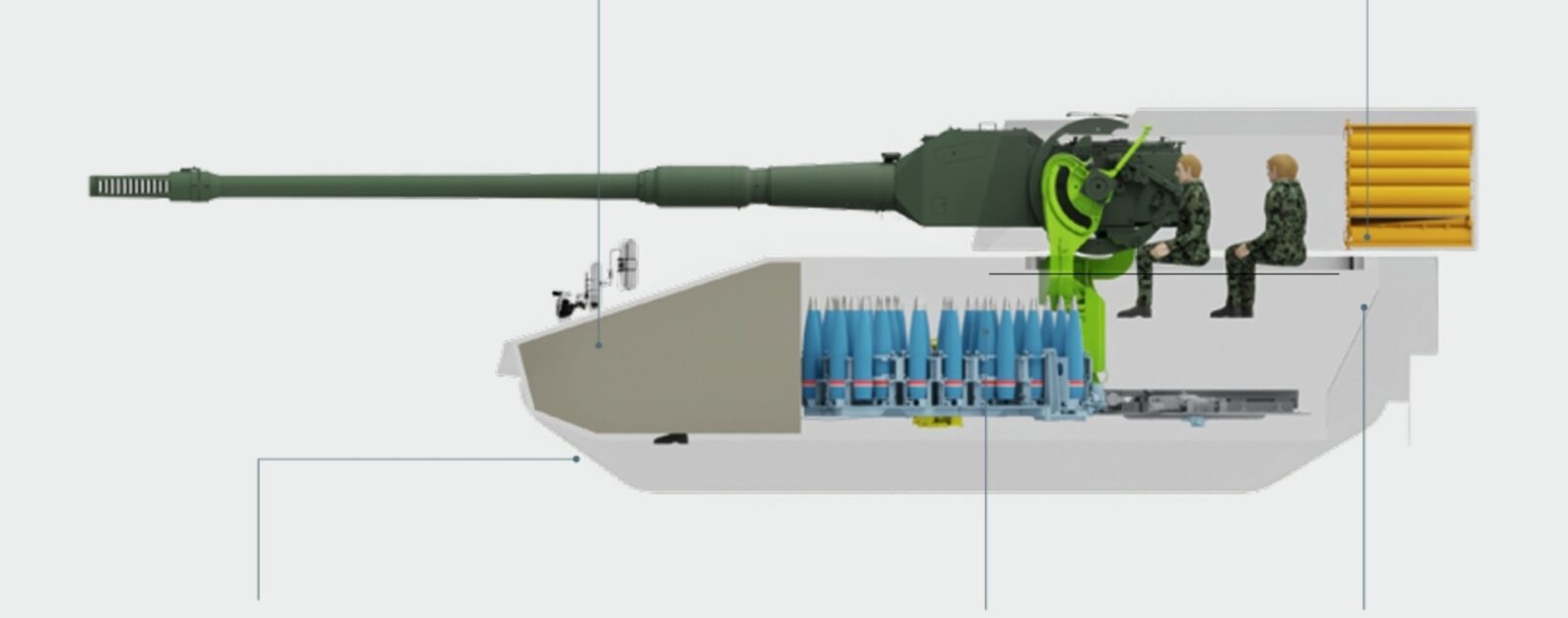 Sercem PzH 2000 jest armata 155 mm L52, a według danych producenta standardowa amunicja osiąga zasięg około 30 km, pociski z gazogeneratorem około 40 km, a specjalne pociski rakietowe nawet do 54-67 km, w zależności od konfiguracji. Do tego dochodzi bardzo wysoka szybkostrzelność, bo trzy pociski w około 9-10 sekund w trybie “burst” i do 10 strzałów na minutę w ogniu ciągłym. Innymi słowy, zaawansowania PzH 2000 nie brakuje i widać to w szczegółach tej armatohaubicy.