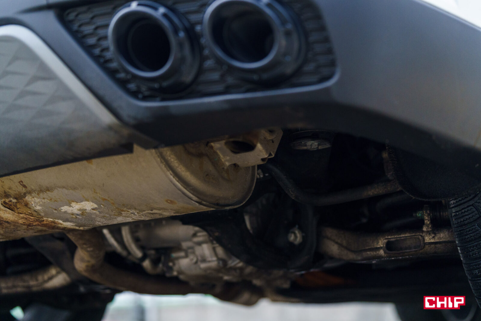 Z tyłu, poza pasem świetlnym, mamy… oszustwo. Te efektownie wyglądająca, dwie podwójne końcówki wydechu to plastikowe atrapy. Fakt, że z daleka wyglądające jak prawdziwe i bardzo efektowne, ale z bliska czar pryska.