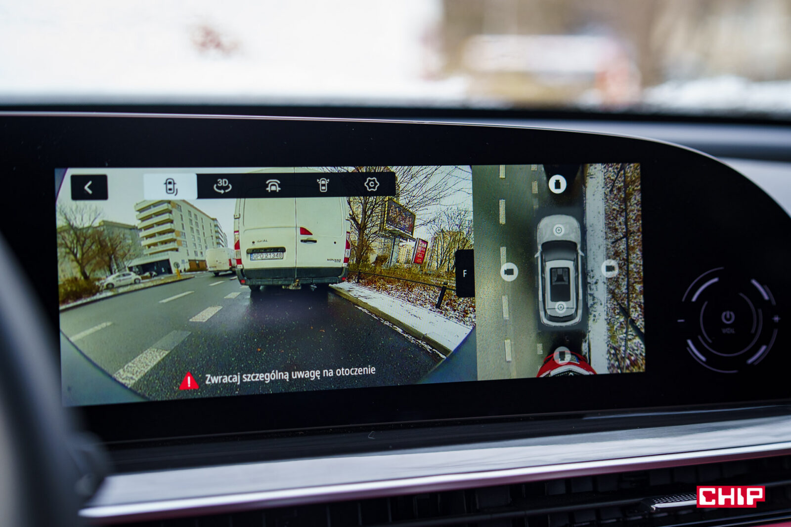Bez zarzutów jest za to system kamer 360, wróć! 540. Czyli po przejechaniu kilku metrów widzimy też, co znajduje się pod autem na półprzezroczystej grafice. Jak w Toyocie czy Lexusie. Obraz jest bardzo dobrej jakości, płynny i czytelny nawet w ciemnym otoczeniu. Tutaj wypada to naprawdę dobrze.