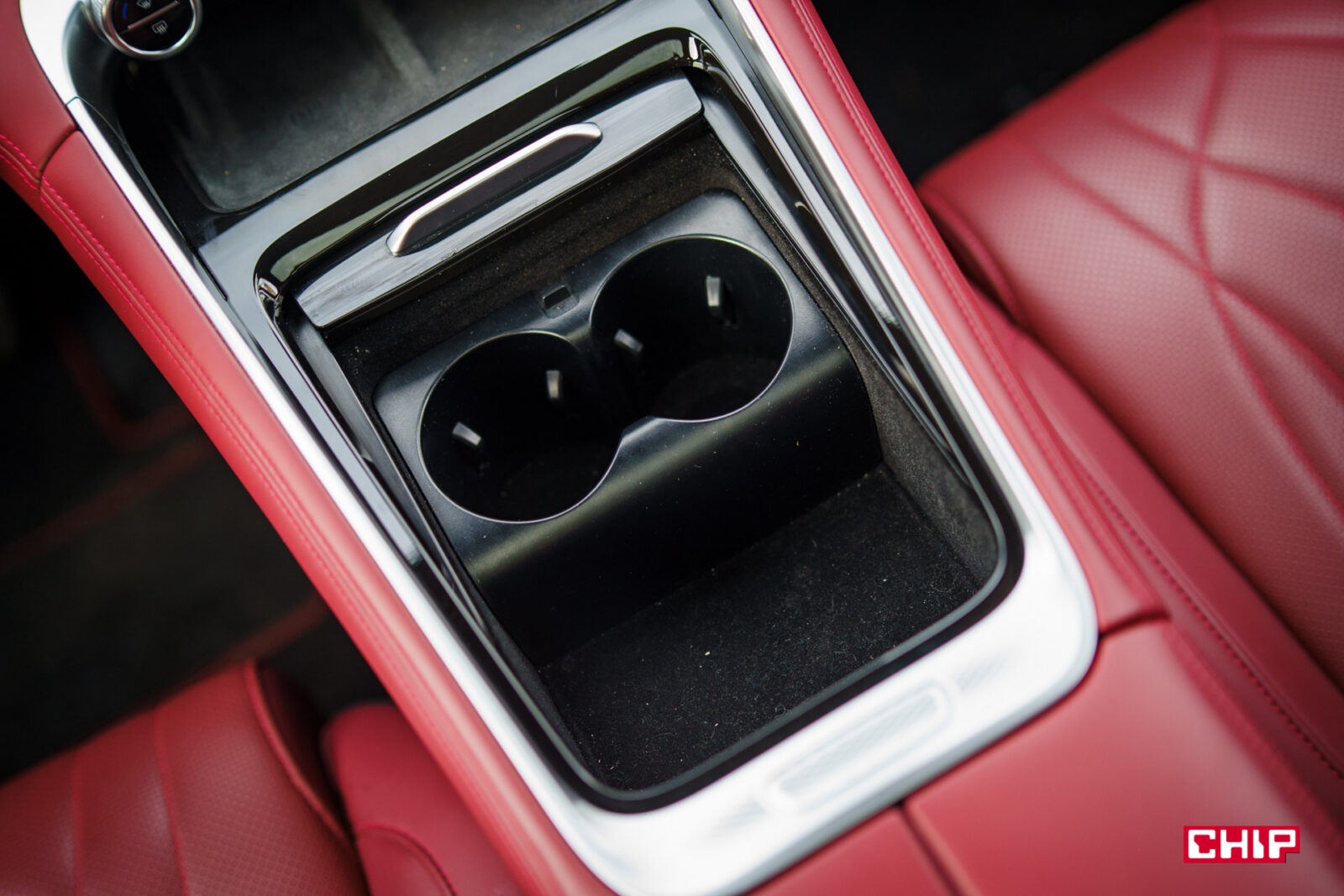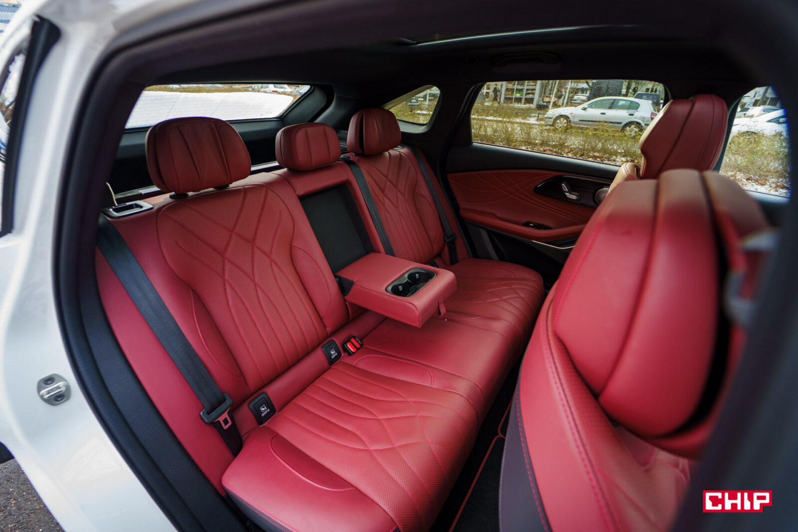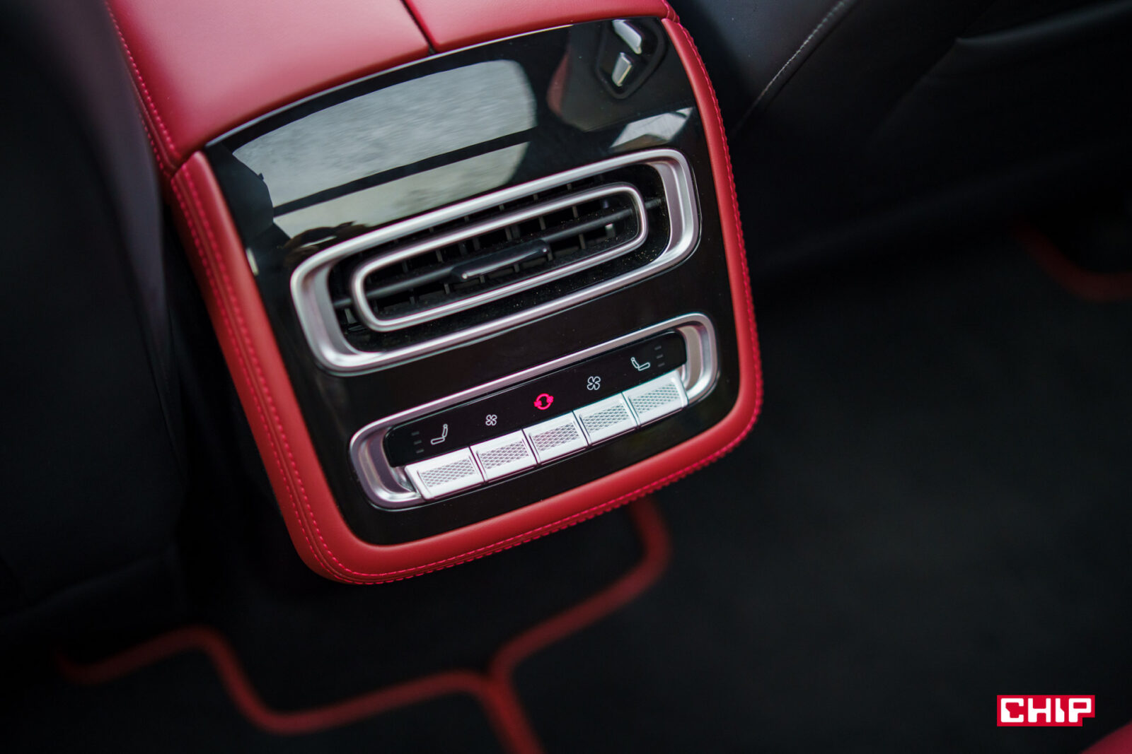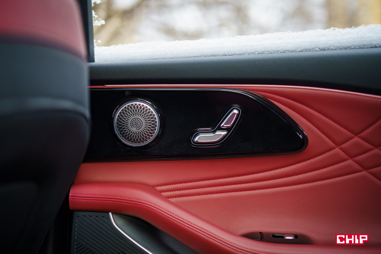 Popatrzcie na zdjęcie wyżej. Chyba jasne jest, że przyciski wprost nam mówią, że tylna kanapa jest regulowana elektrycznie. Możemy regulować oparcie i siedzisko, prawda? Nooo… nie. Regulowane, tak, elektrycznie, jest tylko oparcie. Dolny przycisk to atrapa i nie służy do niczego. Za to dodajmy od razu, że widoczny na zdjęciu głośnik jest podświetlany i sygnalizuje na czerwono, jeśli auto stoi i coś nadjeżdża z tyłu ostrzegając przed otwarciem drzwi. Przydatna rzecz.