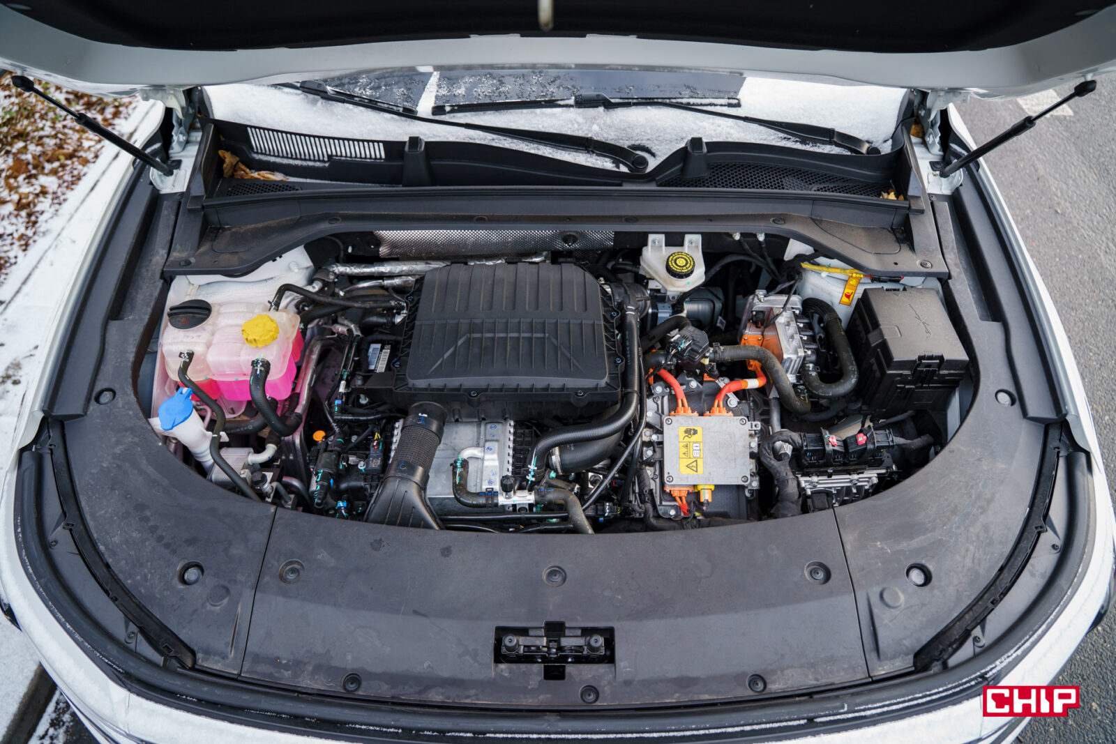Układ hybrydowy Omody 9 jest ciekawą konstrukcją. Mamy tutaj oczywiście silnik spalinowy – 4-cylindrową, turbodoładowaną jednostkę o pojemności 1.5 l o maksymalnej mocy 143 KM (5 200 obr./min) i 215 Nm maksymalnego momentu obrotowego. Współpracuje ona nie z jednym, nie z dwoma, a z trzema silnikami elektrycznymi. Dwa silniki umieszczono na przedniej osi, jeden na tylnej. Przednie silniki dysponują odpowiednio 102 KM + 170 Nm oraz 122 KM + 220 Nm. Silnik umieszczony na tylnej osi jest najmocniejszy – 238 KM i 310 NM. Całość współpracuje z litowo-żelazowo-fosforanową o pojemności 34,46 kWh i automatyczną skrzynię 3DHT. Maksymalna moc całego układu to aż 537 KM i 650 Nm. Przyspieszenie 0-100 km/h to zaledwie 4,9 sekundy, natomiast maksymalna prędkość została ograniczona do 180 km/h.