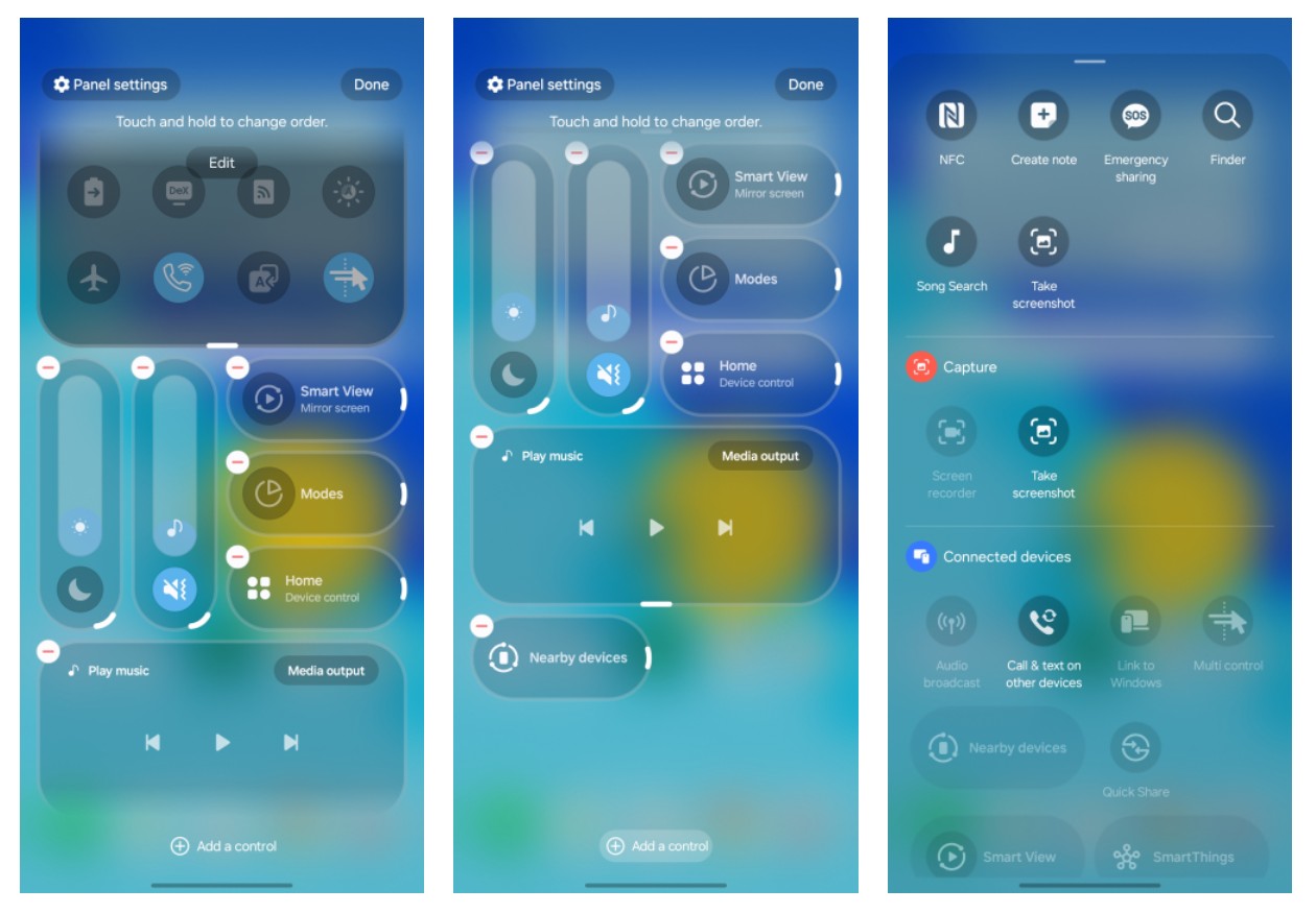 Samsung wyraźnie pozazdrościł konkurencji pewnych efektów wizualnych, ale postanowił zrealizować je po swojemu. W nowej wersji interfejsu zobaczymy system inspirowany estetyką “płynnego szkła” – spodziewajcie się pływających elementów, miękkich cieni i eleganckich efektów mrożonego szkła, które nadają całości nowoczesnego sznytu. Ikony aplikacji systemowych zyskały delikatny efekt 3D, a nowy, dzielony Panel Szybkich Ustawień pozwala teraz na pełną personalizację każdego przełącznika i suwaka. Co więcej, przewijanie w systemie odbywa się teraz od krawędzi do krawędzi, eliminując puste, niewykorzystane przestrzenie.