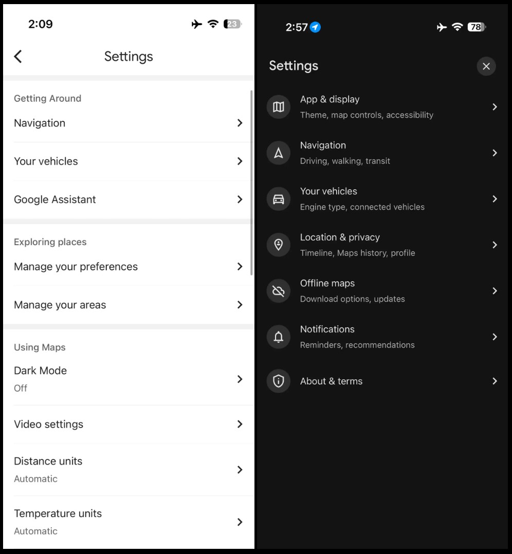 Co ciekawe, gdy już wgłębimy się w konkretne podmenu (np. Nawigację czy Pojazdy), odkryjemy, że same suwaki i opcje wewnątrz pozostały w dużej mierze niezmienione. Google skupił się na poprawie “drzwi wejściowych” do tych ustawień, konsolidując powiązane ze sobą preferencje w sposób, który ma sens dla użytkownika, a nie tylko dla bazy danych.
