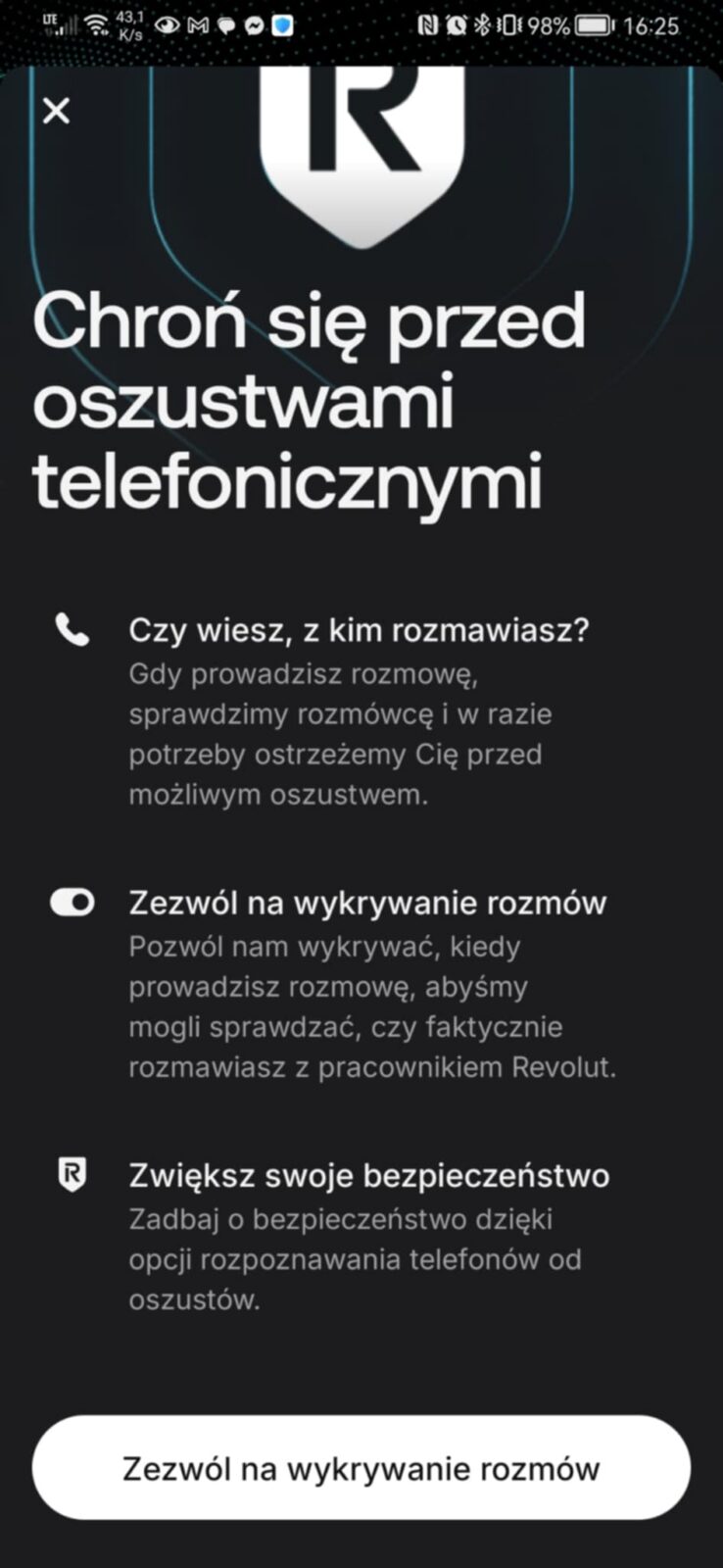 Jak działa weryfikacja połączeń w czasie rzeczywistym w aplikacji Revolut?