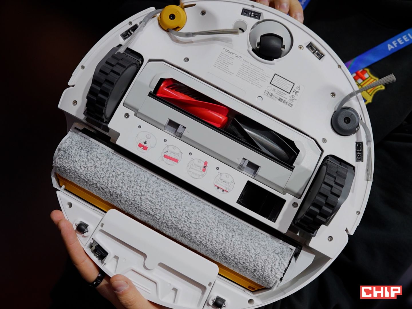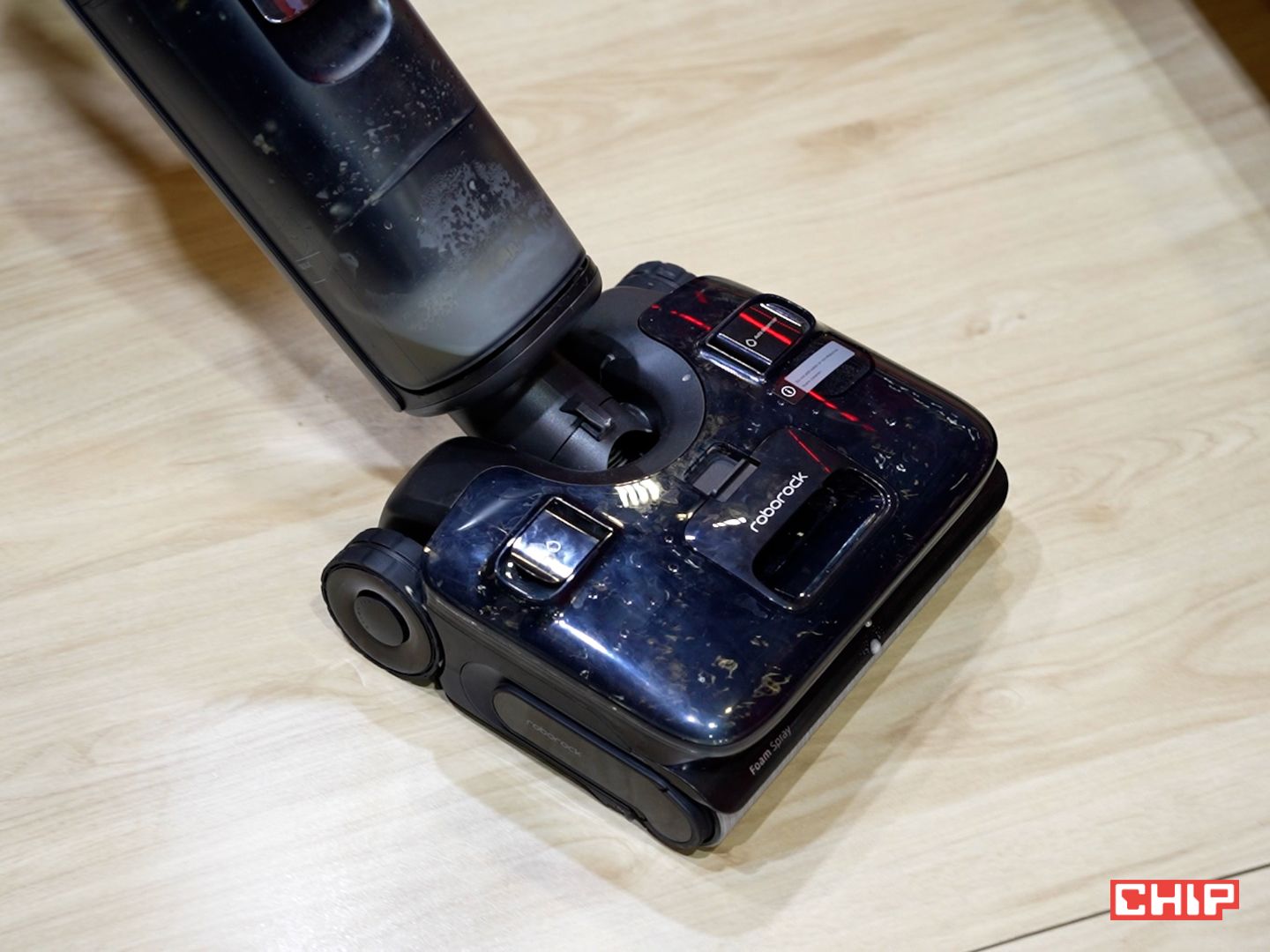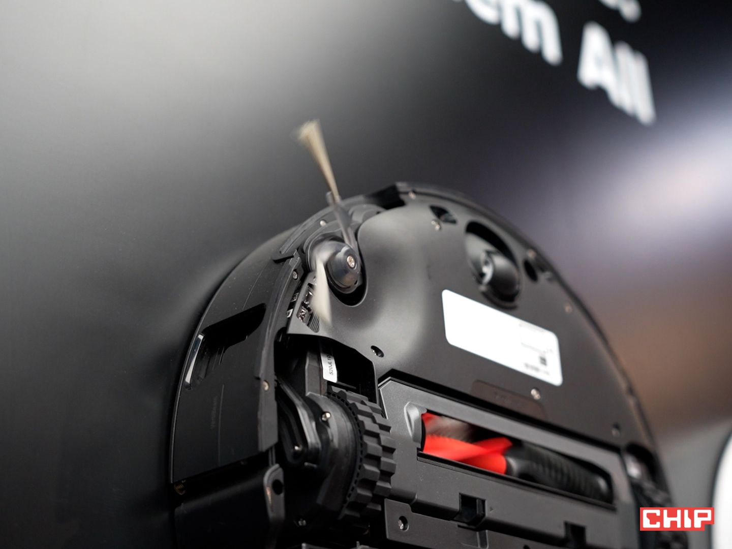 Roborock podaje do 220 obrotów na minutę rolki i 15 N nacisku, żeby radzić sobie z mokrymi zabrudzeniami, typu kawa czy błoto, bez pięciu prób. Rolka ma 270 mm szerokości, a w trakcie pracy jest stale płukana czystą wodą. To za sprawą ośmiu punktów zwilżania i skrobaczki kontrolującej wilgotność oraz odprowadzającej brudną wodę.