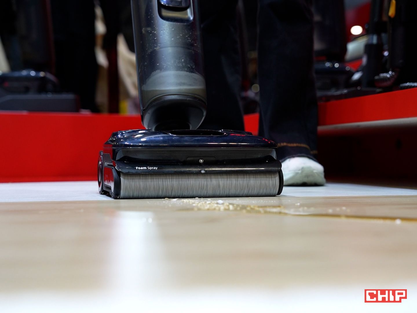 Jeśli chodzi o moc, to mamy tutaj do 25 000 Pa (co jak na wet & dry brzmi bardzo konkretnie), a do tego nacisk do 30 N i 430 obrotów na minutę dla szczotki. W trybie automatycznym działa czujnik DirTect, który ma dopasowywać moc i ilość wody do zabrudzeń.