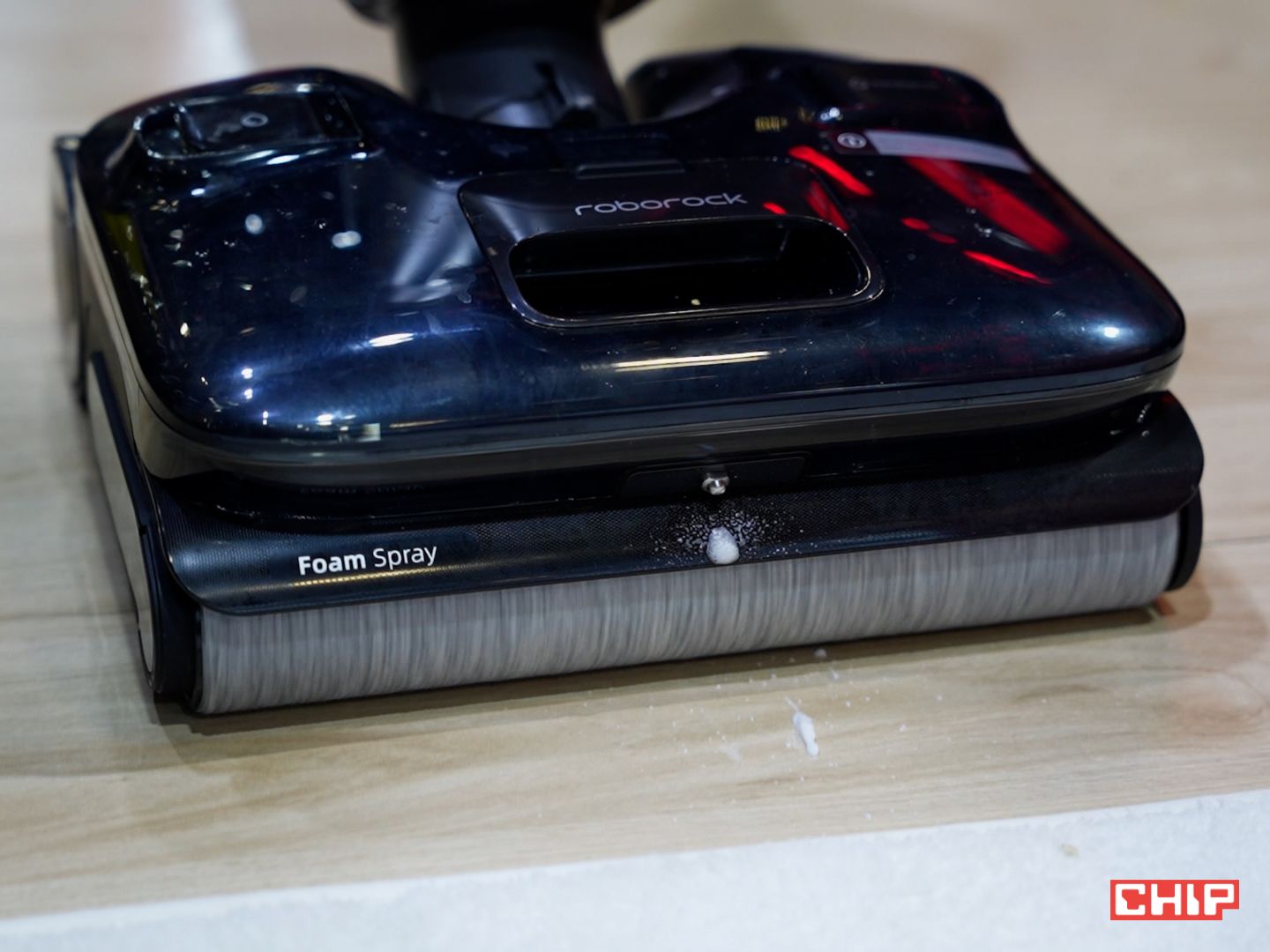 Według Roborocka system ma zamienić 1 ml koncentratu czyszczącego w około 167 milionów mikropęcherzyków, które mają szybciej osadzić się na powierzchni i rozpuścić trudne zabrudzenia. Aktywacja jest prosta i intuicyjna, bowiem ze spustu na uchwycie — kiedy naciśniemy przycisk, mieszane jest powietrze z roztworem, a następnie rozpylanie przez przednią dyszę.