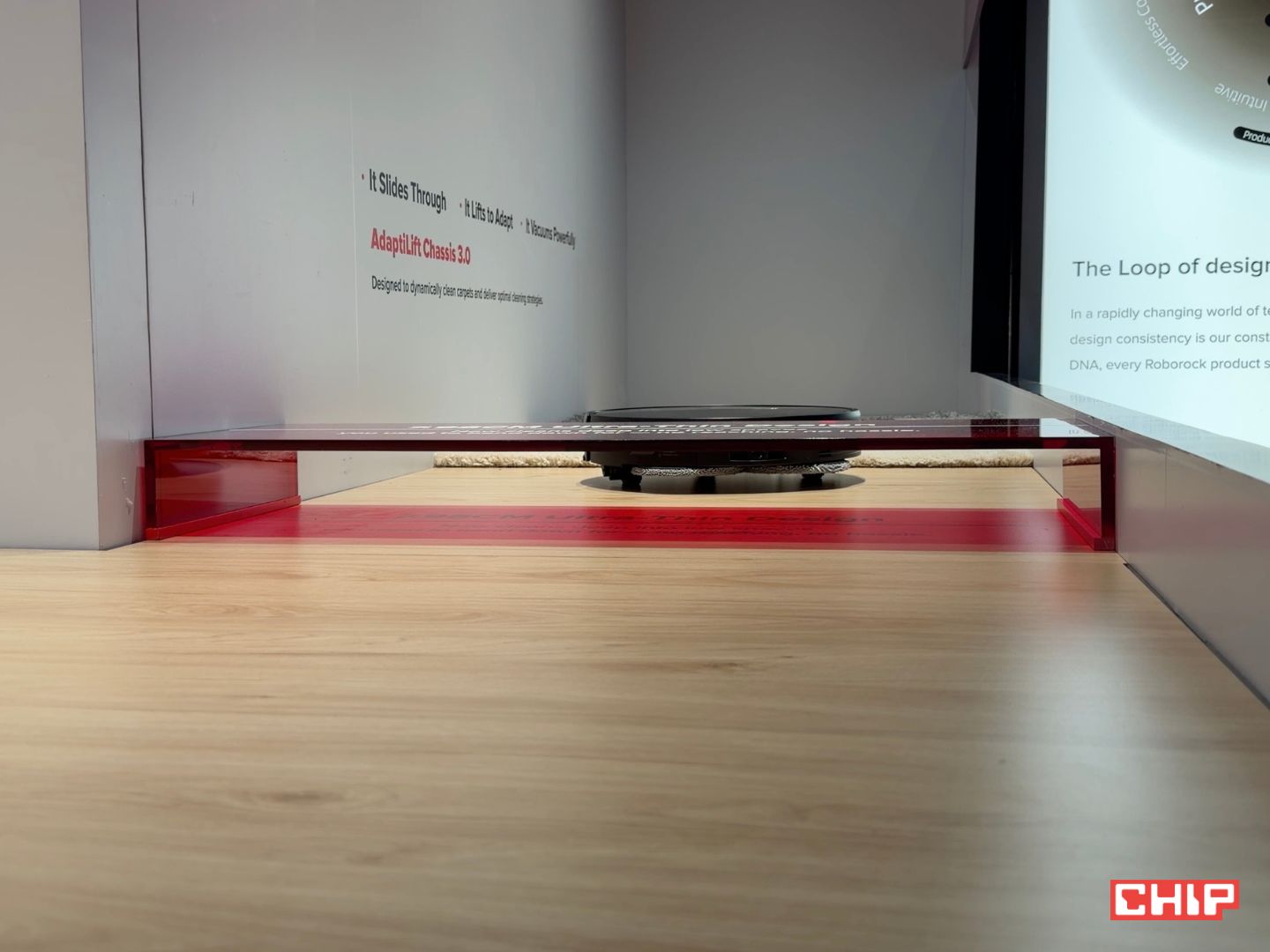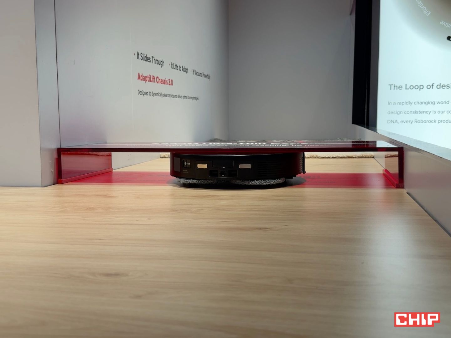 Sercem konstrukcji jest AdaptiLift Chassis 3.0, czyli adaptacyjne podwozie. Roborock deklaruje pokonywanie dwuwarstwowych progów do 8,5 cm oraz pojedynczych do 4,5 cm, a do tego dynamiczne dopasowanie wysokości podczas pracy na dywanach o runie do 3 cm. To może brzmieć skomplikowanie, ale w domu przekłada się na banalny efekt — mniej stref odciętych od sprzątania, mniej kombinowania z rampami i mniej sytuacji, w których robot utknął, bo ktoś zostawił coś, co w teorii miało być małą przeszkodą.