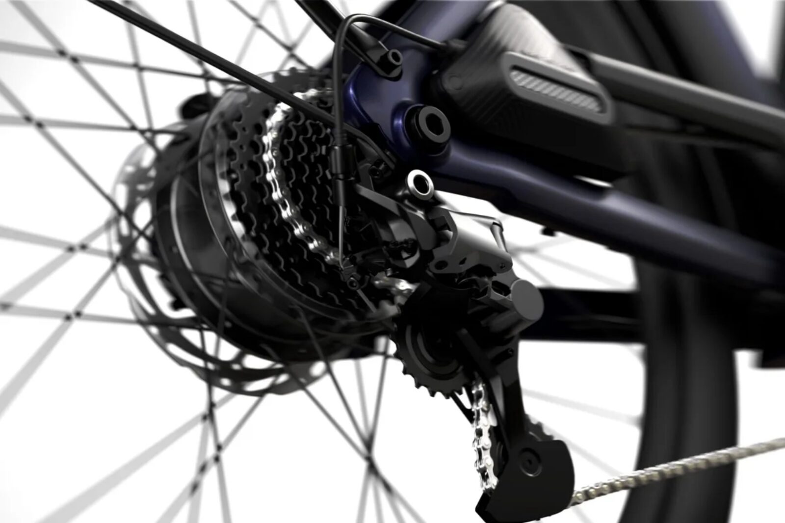 Pod kątem napędu Muxi bazuje na tych samych komponentach co Myon, czyli silniku o mocy 500 watów oraz akumulatorze o pojemności 722 Wh, ale rezygnuje z przerzutki na rzecz prostszego napędu z tylną przerzutką.