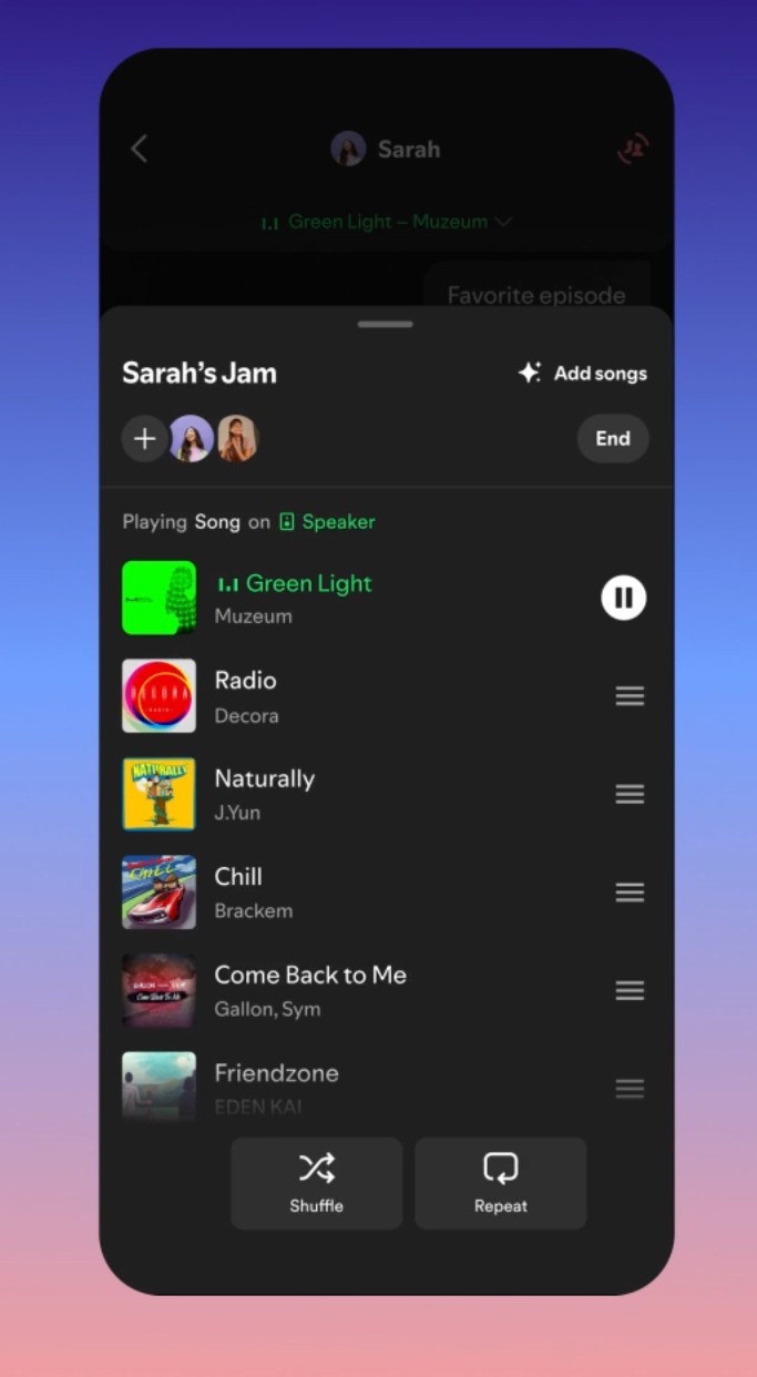 Druga funkcja, Request to Jam, to naturalne rozwinięcie wspólnego słuchania. Spotify zauważyło, że choć funkcja Jam (wspólna kolejka utworów) jest popularna, to często trudno „wstrzelić się” w moment, kiedy znajomi są online i mają ochotę na wspólne sesje. Teraz, widząc aktywność znajomego, możesz po prostu wysłać prośbę o wspólny „dżem”. Jeśli twoja prośba zostanie zaakceptowana, osoba odbierająca staje się hostem sesji, a Wy możecie wspólnie budować kolejkę utworów i pisać do siebie na zsynchronizowanym czacie.