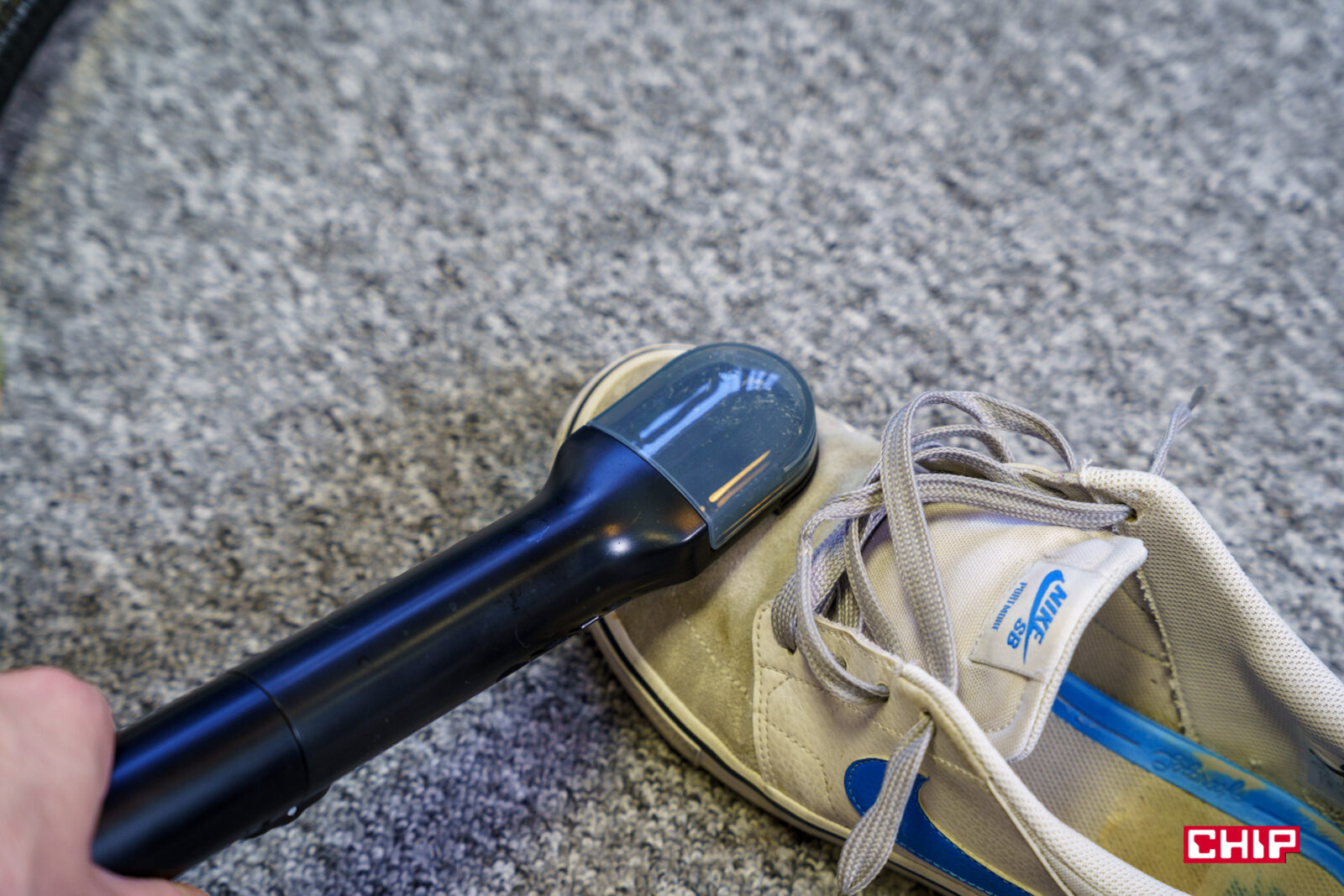 Materiałową słowo klucz i przejdźmy od razu do butów. Producent nie zaleca czyszczenia butów skórzanych i w pełni się z nim zgadzam. Włosie szczotek jest dosyć twarde i mogłoby łatwo zniszczyć skórzane buty. Więc jakaś siatka, wytrzymały zamsz, elementy materiałowe, ewentualnie część podeszwy – jak najbardziej.