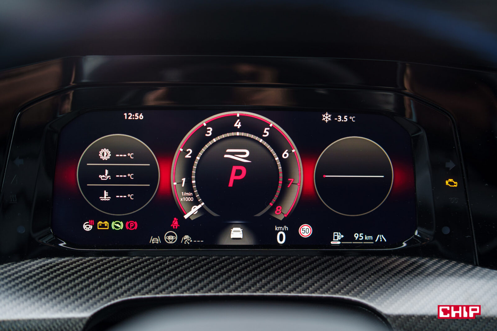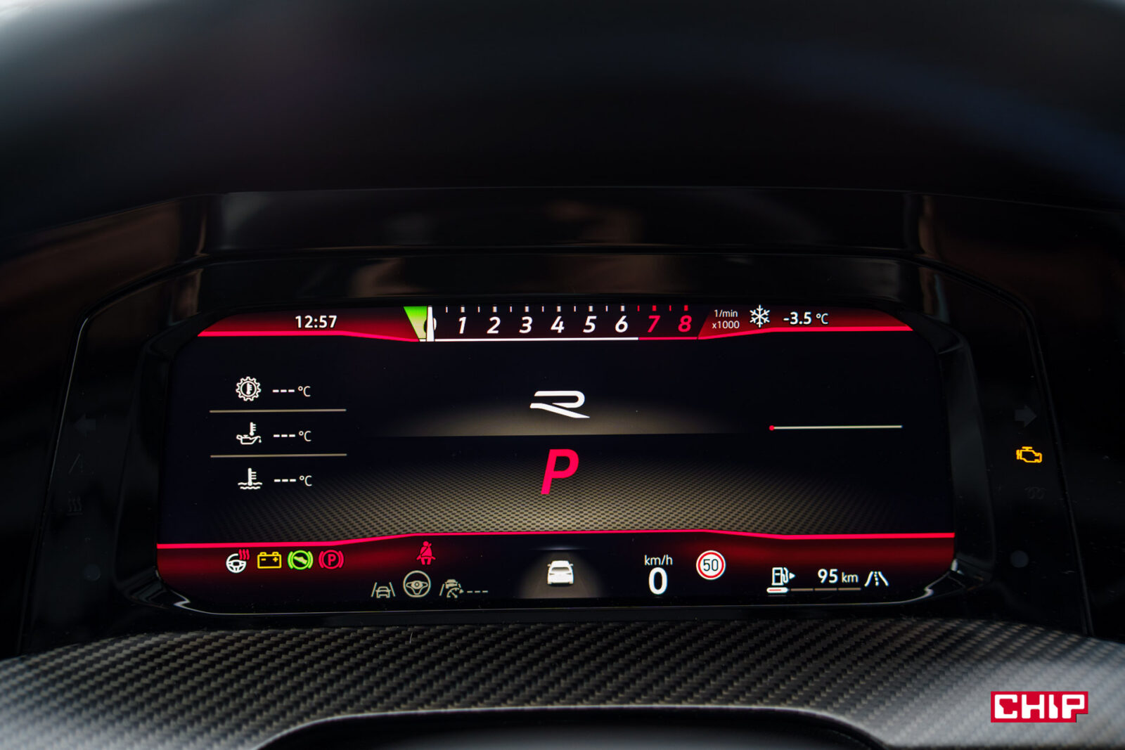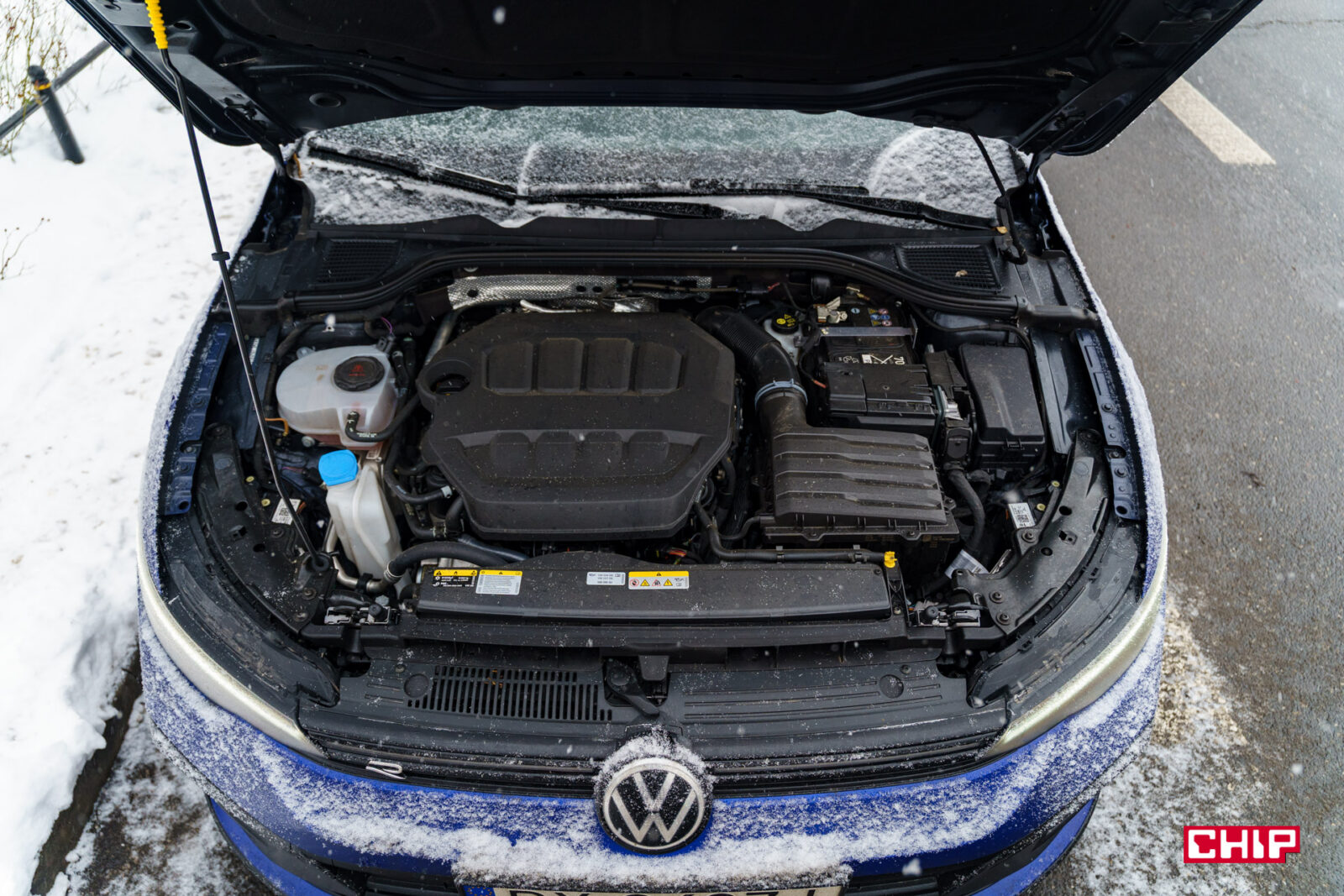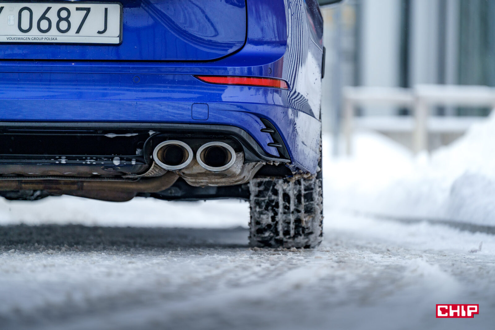 Jednym z wielu elementów odróżniających R od zwykłego Golfa, jest jego napęd. Mamy tutaj napęd na wszystkie koła nazywany przez producenta 4MOTION, który w normalnych okolicznościach preferuje napędzanie przednich kół, ale potrafi błyskawicznie dołożyć napęd na tył i rozdzielić moment obrotowy tylnych kół tak, aby auto było stabilne nawet w wymagających warunkach. Zadaniem tego skomplikowanego systemu jest monitorowanie prędkości obrotowej każdego koła, analizowanie prędkości i sygnałów przesyłanych przez kierownicę, aby przewidywać ewentualne poślizgi i zapobiegać im i tak, to działa. Zima 2025/2026 uraczyła nas nie tylko pięknymi, białymi krajobrazami, ale też cholernie śliskimi drogami, które pozwoliły nam sprawdzić, czy napęd 4MOTION jest faktycznie taki mądry, jak zapewnia producent. Cóż, jest. Bez wnikania w szczegóły naszych przygód – pozwalał na pokonywanie zakrętów z prędkością znacznie przekraczającą tą, jaką osiągali inni kierowcy, a nawet jeśli bywały momenty, w których miałam wrażenie, że złapałam lekką podsterowność, wystarczył lekki sygnał przekazany Golfowi R za pomocą kierownicy, a posłusznie wracała na prawidłowy tor jazdy. Miłośnicy jazdy bokiem na pewno docenią też dedykowany tryb jazdy Drift. Wtedy napęd jest przekazywany na tył z priorytetem jednego koła, co ułatwia wejście w poślizg.