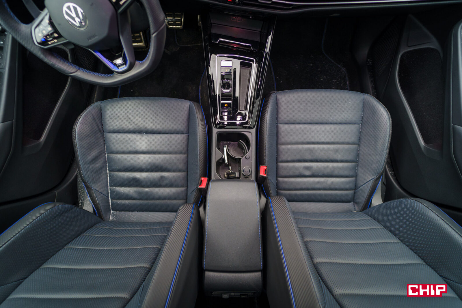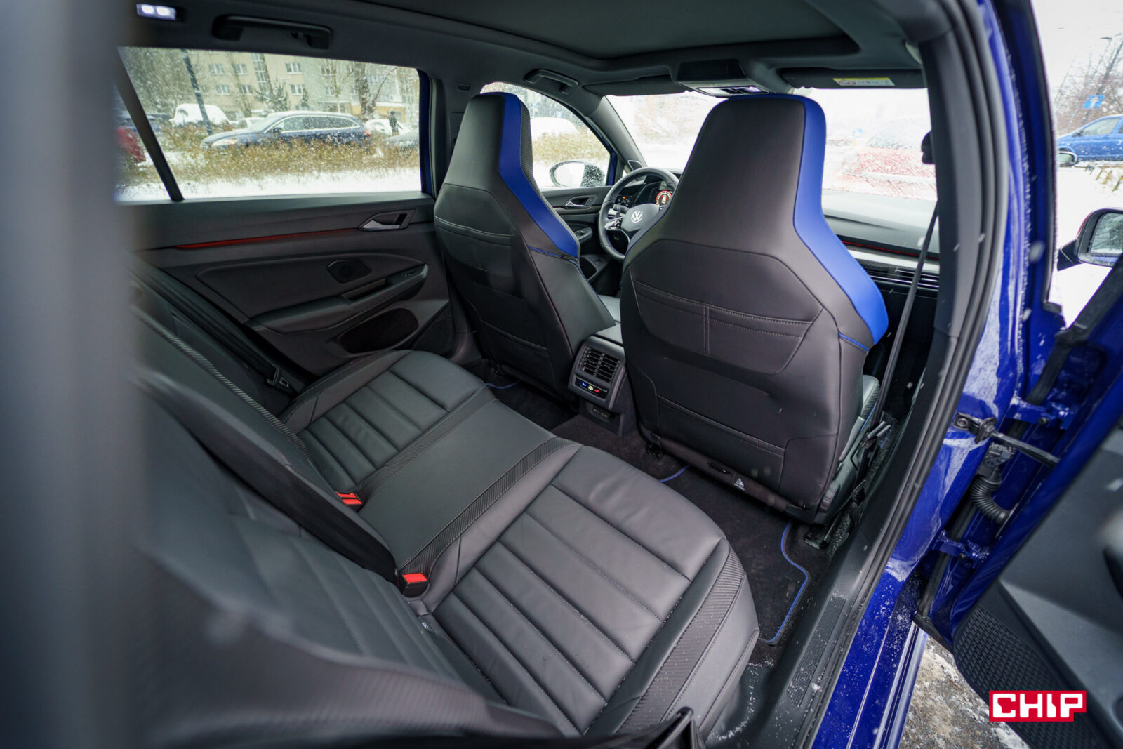 Sportowe fotele Premium Sport są standardem wyposażenia wersji R, ale w podstawie są one materiałowe. Za widoczna na zdjęciach tapicerkę skórzaną Nappa trzeba solidnie dopłacić, bo 13 810 zł. A i tak nawet za dopłatą elektrycznie jest regulowany wyłącznie fotel kierowcy. Do tego mamy podgrzewanie. Fotele o sportowym zacięciu, dobrze trzymające w zakrętach, ale bardzo komfortowe i nieprzesadnie twarde. Można w nich śmiało robić bardzo długie trasy.