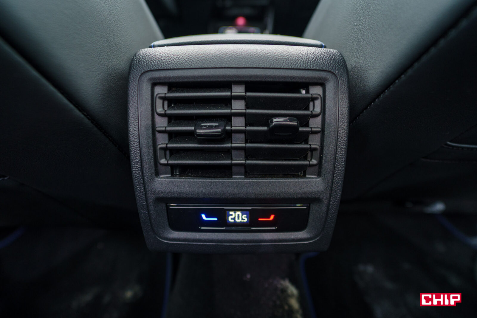 Na tylnej kanapie mamy bardzo dużo miejsca, w końcu po coś nam te kombi potrzebne. Nie brakuje też przestrzeni nad głową i podróżuje się to bardzo komfortowo. Do dyspozycji są tu dwa porty USB-C, trzecia strefa klimatyzacji, rozkładany podłokietnik oraz klapkę do bagażnika w celu przewożenia dłuższych przedmiotów.
