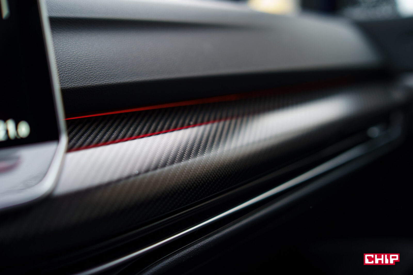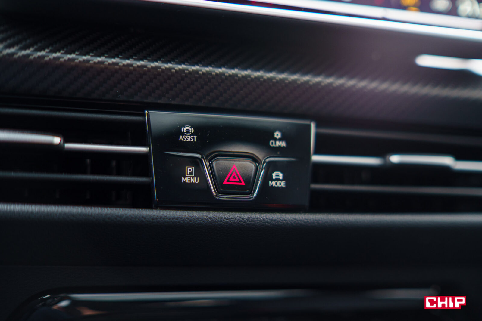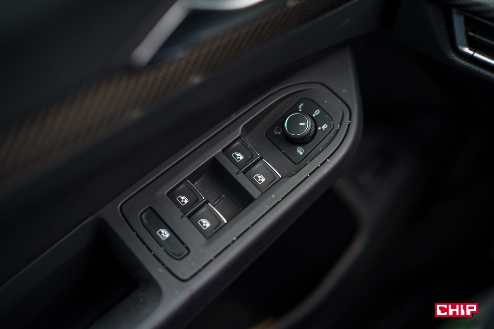 Variant R w podstawowej wersji wyposażenia kosztuje 197 690 zł, natomiast testowany egzemplarz to koszt rzędu 255 000 – 257 000 zł. Za co dopłacamy prawie 60 000 zł? Najdroższa jest tapicerka ze skóry Nappa, dedykowana dla wersji R – kosztuje 13 810 zł. Wstawki o strukturze włókna węglowego w środku to kolejne 4 520 zł, panoramiczny dach również nie należy do najtańszych – 6 080 zł. Jak widzicie, bez wielu z tych dodatków dałoby się na spokojnie obejść, ale osobiście szarpnęłabym się na wyświetlacz head-up za 3 260 zł, bo dzięki niemu kierowca nie musi odrywać wzroku od drogi, zobaczycie tam nie tylko aktualną prędkość i znaki ograniczeń, ale tez wskazówki nawigacyjne, cholernie przydatna rzecz. System kamer 360° za 1 810 zł również jest dobrą inwestycją – nie trzeba się martwić ewentualnymi przeszkodami podczas parkowania, obraz jest wysokiej jakości, wyposażono go również w dynamiczne linie, co pozwala na sprawne manewrowanie nawet niezbyt wprawnemu kierowcy. Wcześniej wspomniane zawieszenie to koszt 4 030 zł.