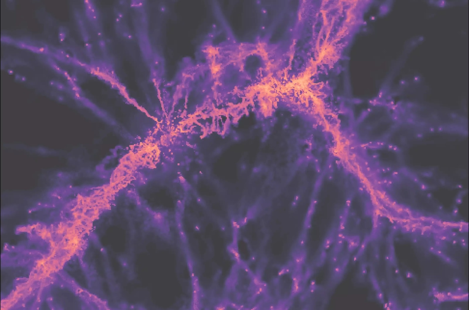 Mimo że stanowi około pięciu szóstych całej materii we wszechświecie, ciemna materia pozostaje bezpośrednio nieuchwytna. Nie oddziałuje ze światłem w żaden sposób: nie świeci, nie odbija i nie blokuje promieniowania. Przechodzi przez zwykłą materię, w tym przez nasze ciała, nie wywołując żadnych zauważalnych skutków. We wczesnych etapach istnienia kosmosu zarówno zwykła, jak i ciemna materia były rozproszone. Ciemna materia, dzięki swoim własnościom, zaczęła gromadzić się pierwsza, tworząc swoiste „studnie” grawitacyjne. To one następnie przyciągały zwykłą materię, dając początek gęstym obłokom, w których rodziły się pierwsze gwiazdy i galaktyki. W ten sposób ta niewidzialna substancja zadecydowała o ostatecznym kształcie kosmicznej sieci, a pośrednio przyspieszyła powstanie środowisk potencjalnie przyjaznych życiu.