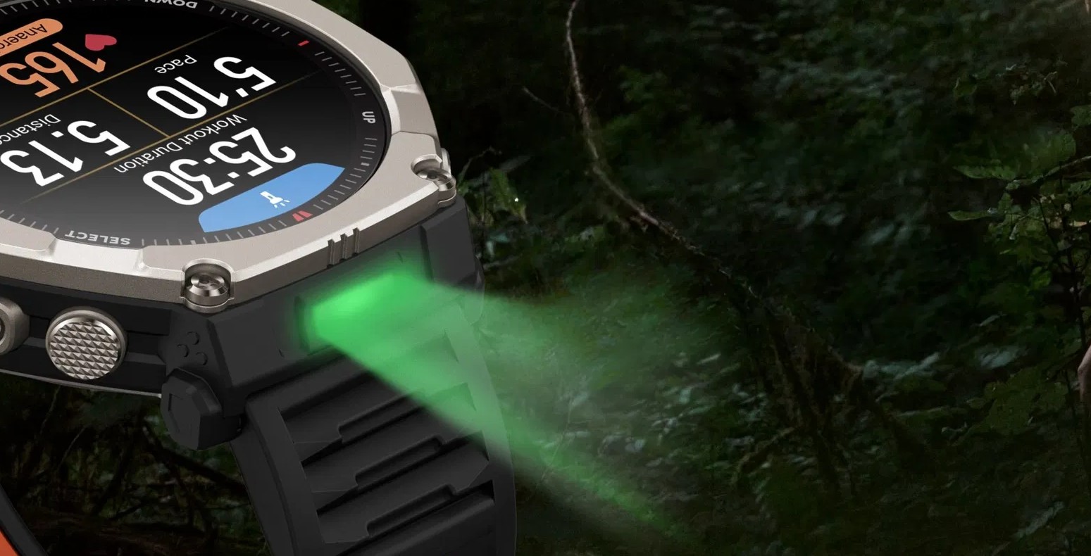 Pierwsze, co rzuca się w oczy, to potężna koperta o rozmiarze 51 mm. Amazfit postawił na materiały z najwyższej półki – bezel, przyciski oraz dekiel zegarka zostały wykonane z tytanu klasy 5. Reszta obudowy to polimer wzmocniony włóknem szklanym, co pozwoliło utrzymać wagę na poziomie około 89 gramów. Ekran AMOLED o przekątnej 1,5” chroni szkło szafirowe, ale prawdziwym hitem jest jego jasność szczytowa wynosząca aż 3000 nitów. To wartość, która gwarantuje idealną czytelność map i parametrów nawet na środku pustyni w samo południe.
