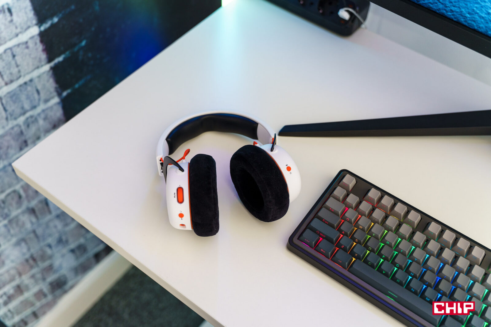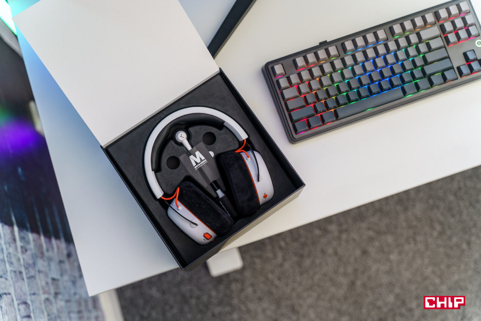 Poza tym, że Bayerdynamic MMX 150 Wireless są świetnie wykonane, są zwyczajnie bardzo ładne. Kontrast elementów białych, czarnych i pomarańczowych rzuca się w oczy. Dla osób szukających bardziej stonowanego wyglądu pozostaje wariant czarny.