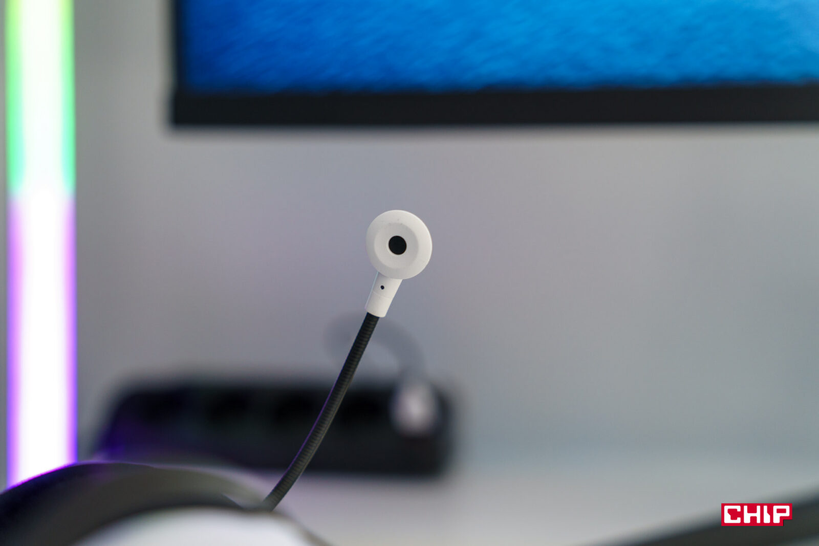 Pojemnościowy mikrofon kierunkowy ładnie zbiera dźwięk, jednocześnie jest wyposażony w coś, co możemy nazwać redukcją hałasu. Bardzo skutecznie wycina odgłosy otoczenia jak klikanie myszką czy klawiaturą. Spokojnie można go użyć też do nagrywania głosu jak choćby lektora do wideo. Mikrofon ma funkcję Sidetone, która pozwala nam słyszeć własny głos w słuchawkach. Dzięki temu możemy kontrolować to, jak głośno mówimy. Funkcja działa wyłącznie z podpiętym mikrofonem i w razie potrzeby można ją wyłączyć poprzez przytrzymanie pokrętła głośności. Sidetone może być regulowany w 5-stopniowej skali, ale… tylko w aplikacji mobilnej.