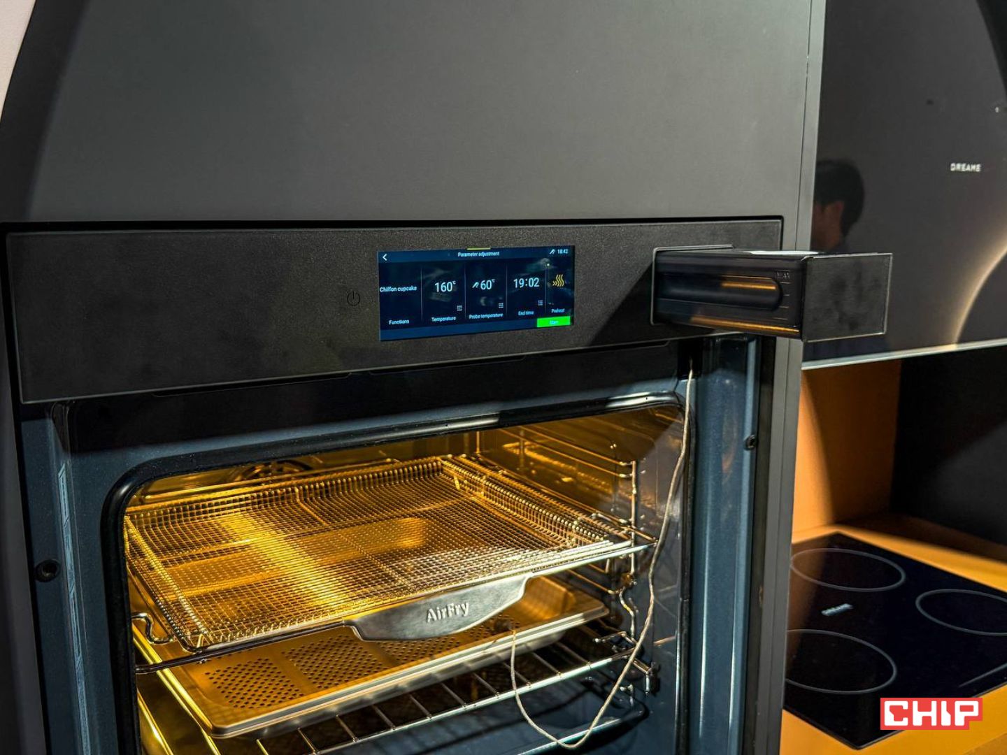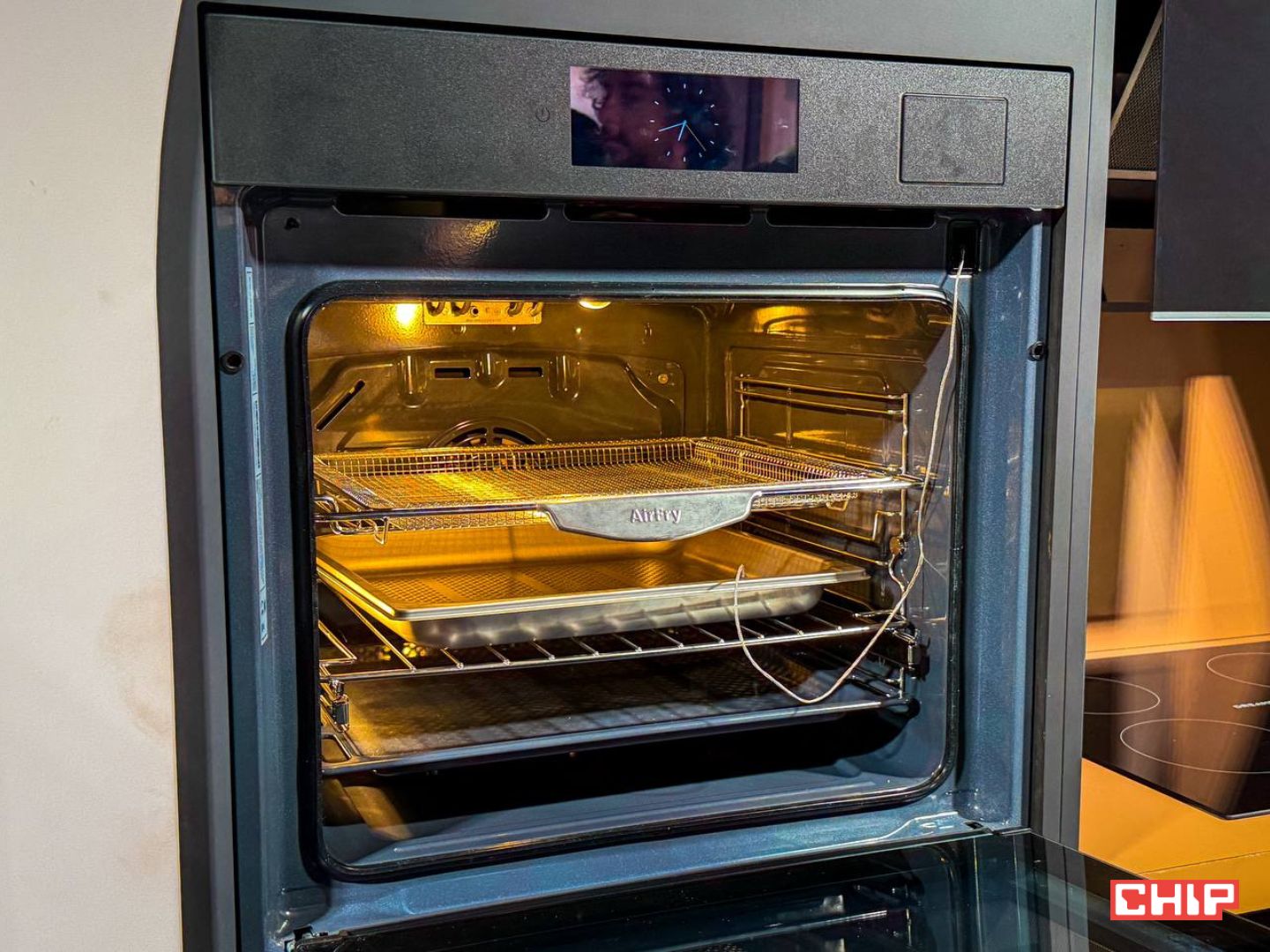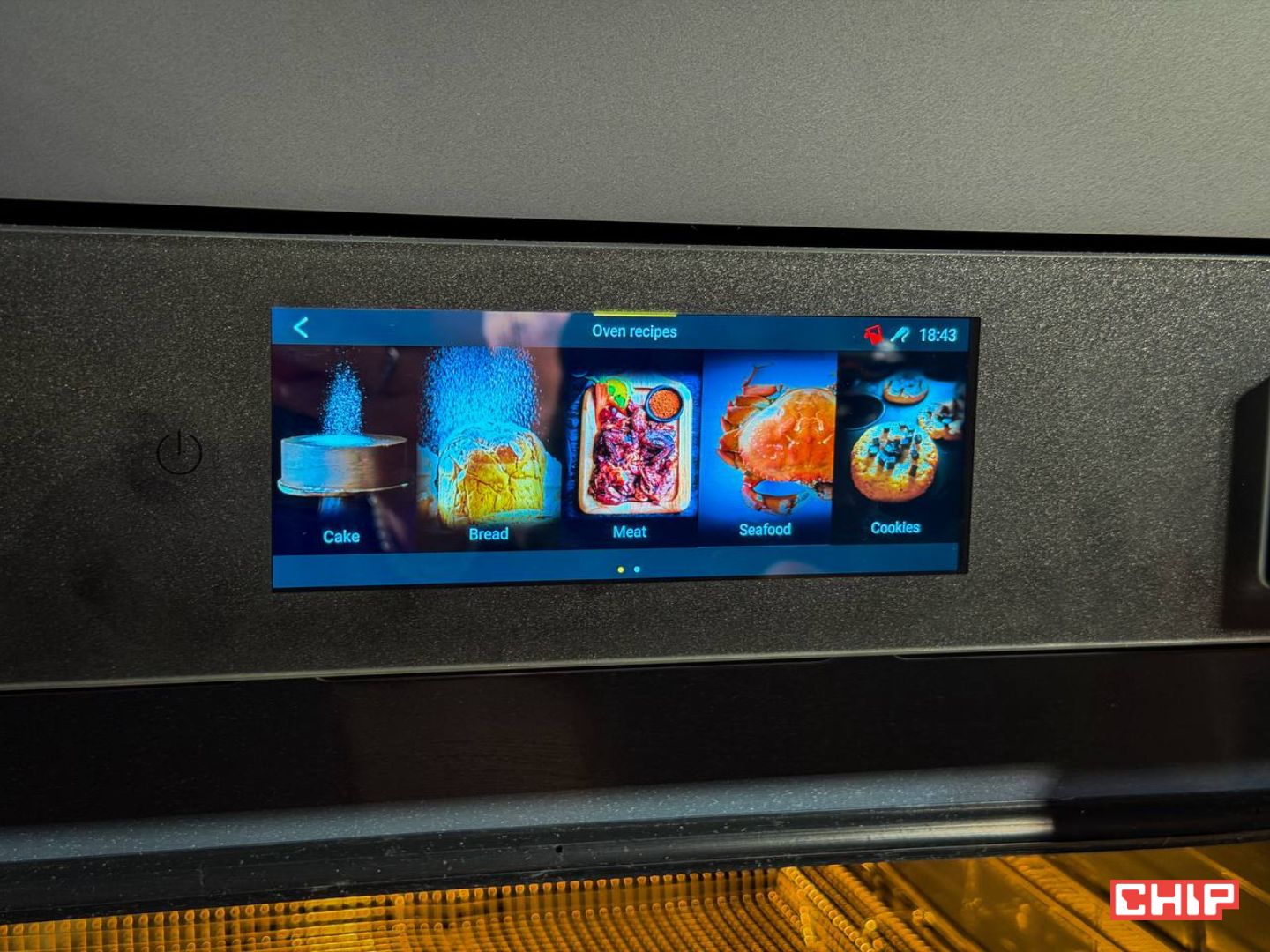 Całość jest obsługiwana w sposób, który ułatwia cały proces. Duży ekran dotykowy, przepisy i szybkie uruchamianie programów sprawiają, że piekarnik prowadzi nas za rękę, zamiast zmuszać do ciągłego ustawiania parametrów „na czuja”. To szczególnie dobrze działa, gdy w domu gotuje więcej niż jedna osoba — każdy włącza, wybiera i dostaje przewidywalny efekt, bez zadawania pytań, tłumaczenia czy przeszukiwania internetu.
