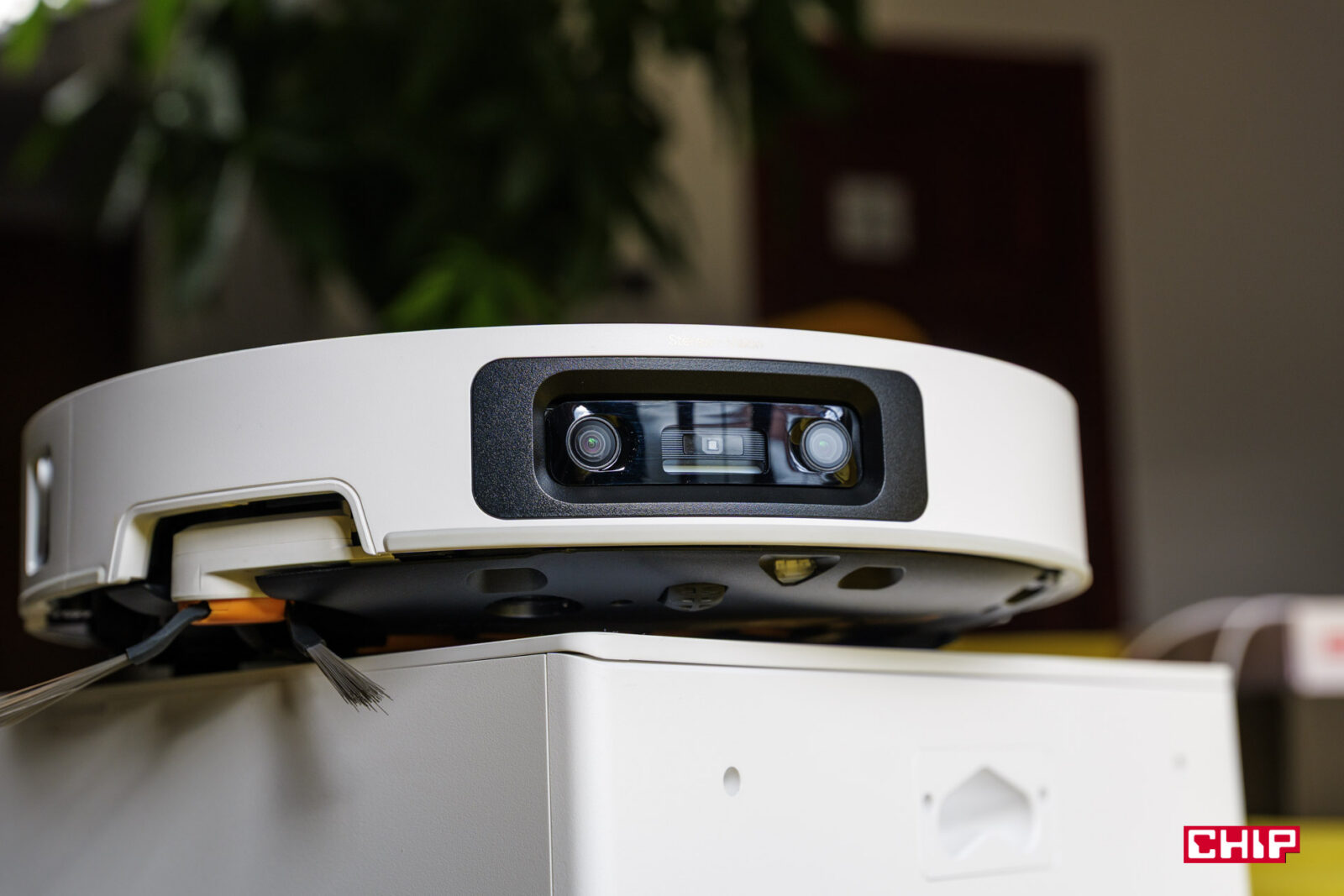 Dreame X60 Ultra kryje w chowanej wieżyczce część systemu nawigacyjnego OmniSight. W jego skład wchodzi m.in. czujnik laserowy oraz dwie kamery na przodzie obudowy. Dzięki temu robot widzi dokładny obraz w pełnym zakresie 360 stopni i jednocześnie perfekcyjnie oblicza odległość do przeszkód i otoczenia. Co przy samych kamerach nie jest możliwe, nie pozwalają ona nawet na dokładne oszacowanie odległości. Dzięki czujnikowi laserowemu Dreame X60 Ultra w zasadzie widzi otoczenie jak my, ale ma w oku dokładną miarkę.