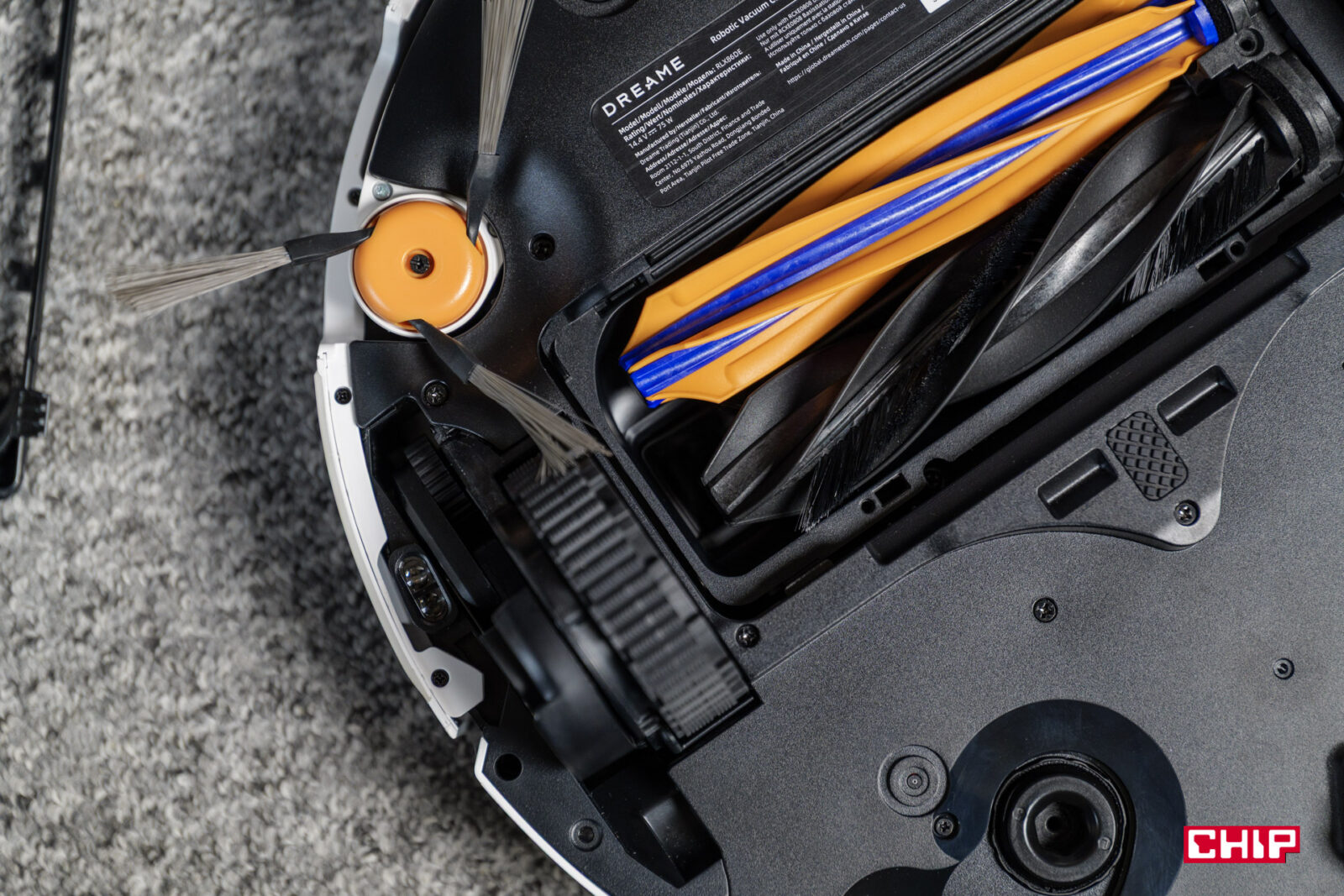 Jeśli podczas mopowania Dreame X60 Ultra trafi na dywany to unosi podkładki na wysokość 10,5 mm, ale jeśli aktywujemy tryb dokładnego czyszczenia dywanów, podkładki mogą być podniesione, razem ze szczotką boczną, na wysokość 21,5 mm.
