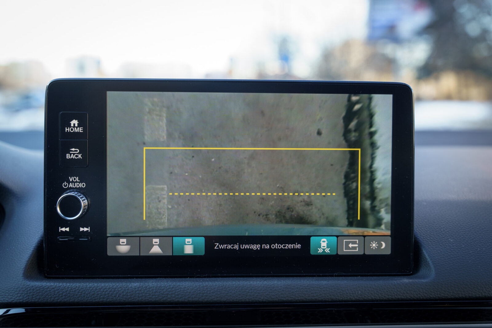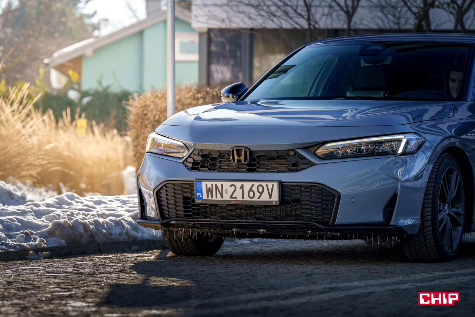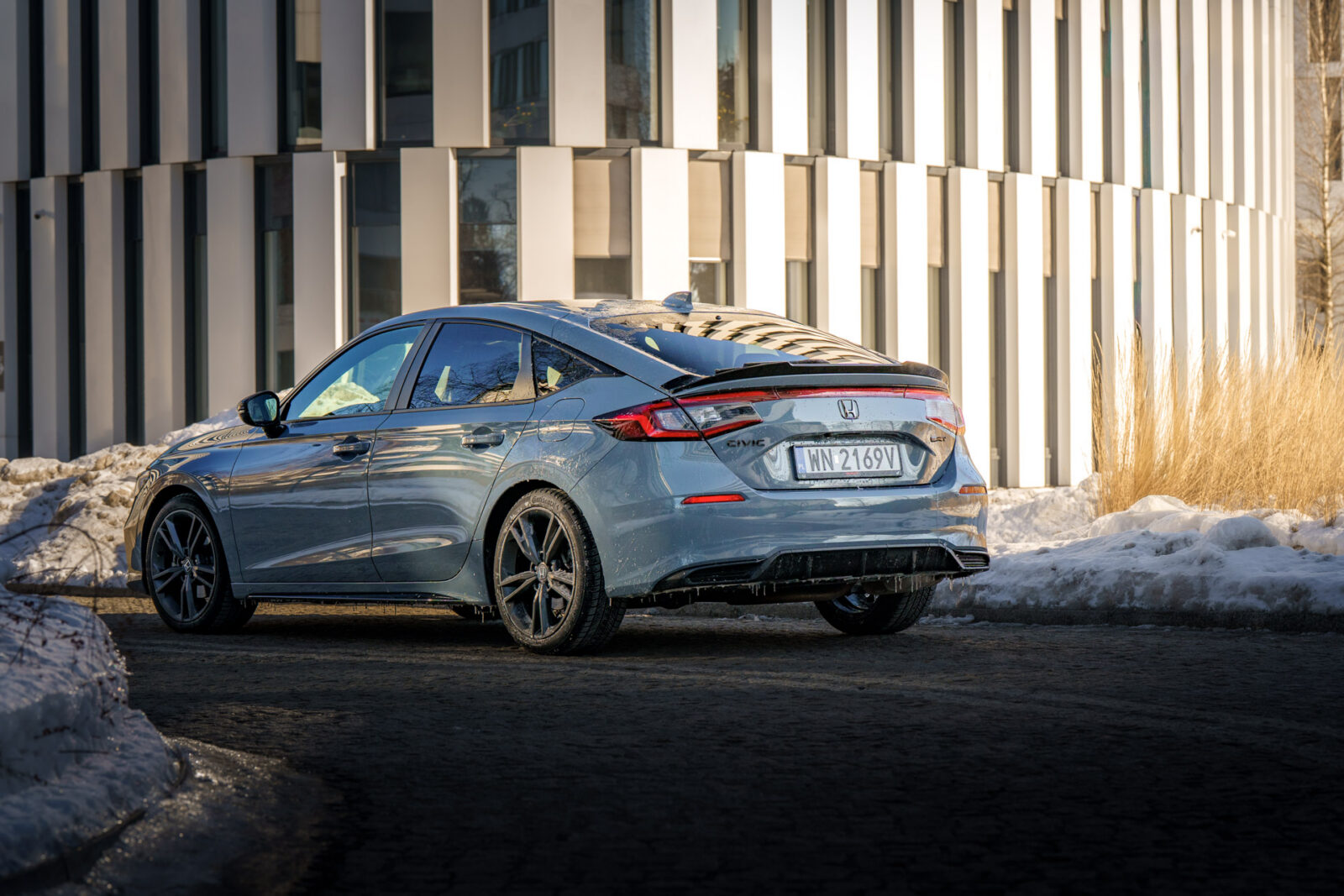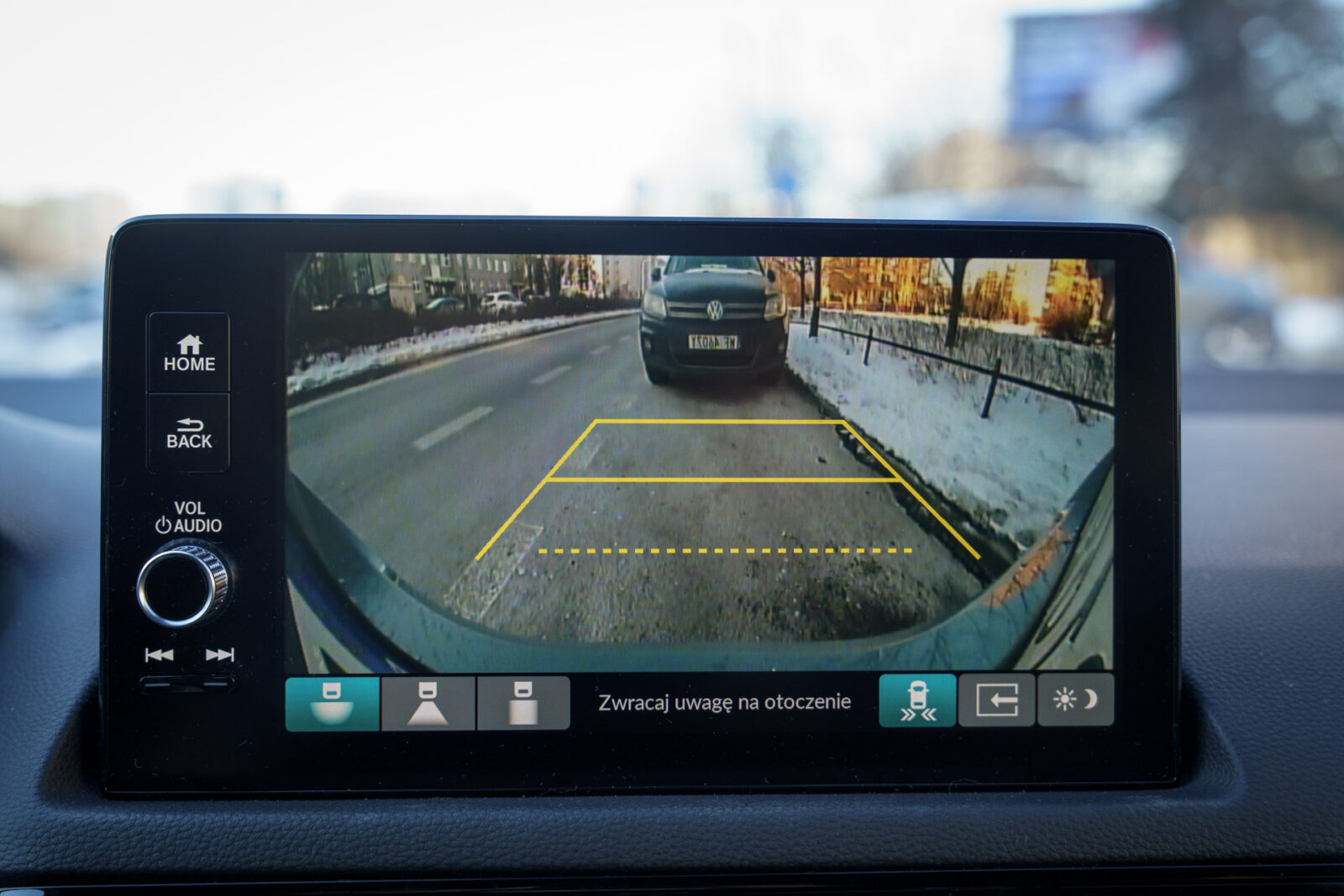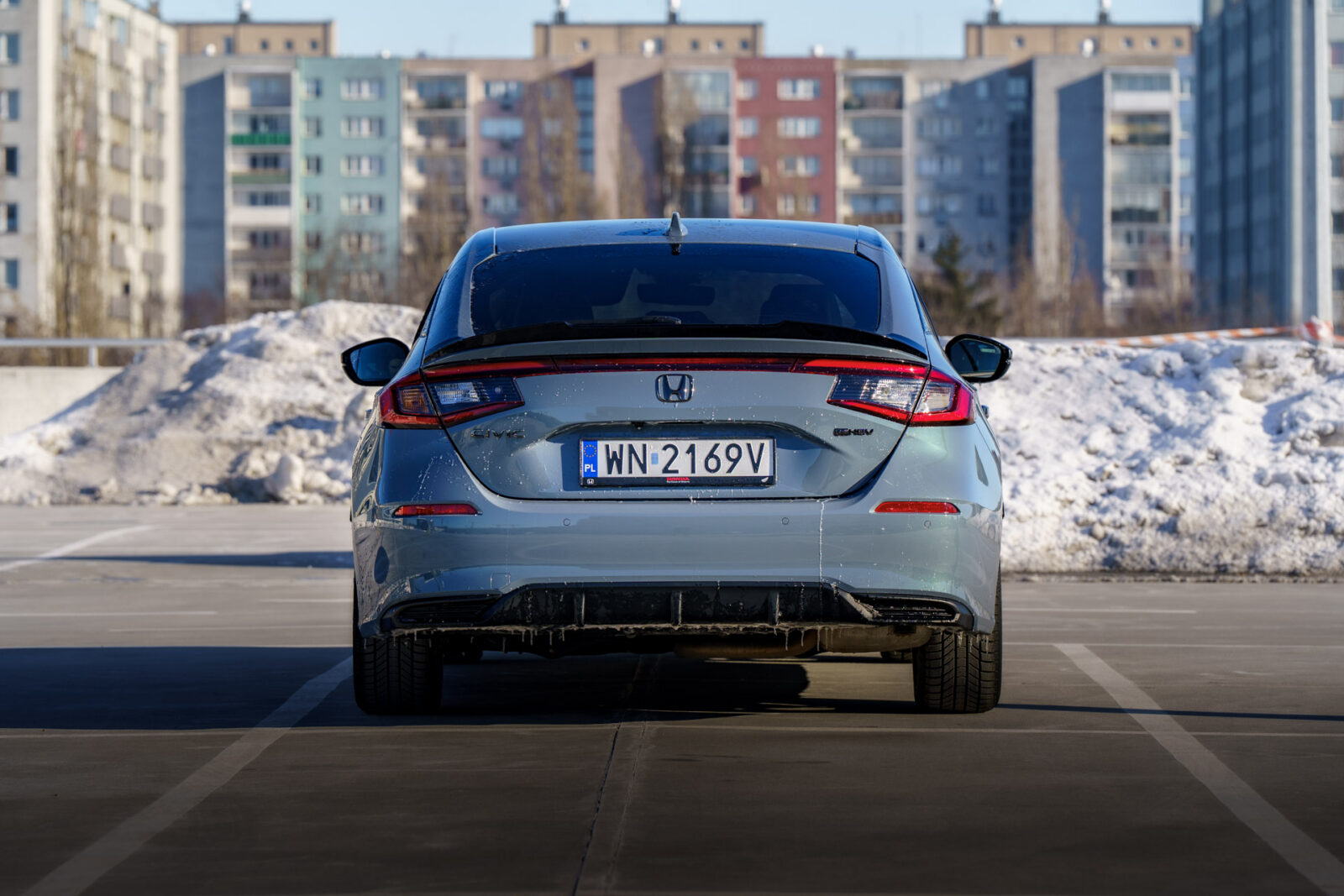 Układ hybrydowy Hondy jest jednym z lepszych, jakie widziałam. Przede wszystkim, jeżeli nie będziecie Civica katować, skrzynia biegów nie będzie nadmiernie hałasowała, co jest miłym zaskoczeniem, w szczególności biorąc pod uwagę to, że mamy do czynienia z e-CVT, a więc bezstopniową przekładnią, którą możemy spotkać w innych japońskich hybrydach. Jeżeli mówimy o miejskich prędkościach, również dynamika nie będzie stanowiła problemu. Układ hybrydowy Civica zawsze rusza na prądzie, więc pełny moment obrotowy silnika elektrycznego mamy już na „dzień dobry”. Dzięki temu auto ochoczo rusza spod świateł i zazwyczaj nie korzysta z silnika spalinowego do prędkości ok 40 km/h, więc jest całkiem dynamicznie i cicho. Jeśli dodamy do tego świetnie zestrojony układ monitorowania martwego pola i nieprzesadnie czuły system ostrzegania przed opuszczeniem pasa ruchu, auto w zasadzie odwala większość roboty za Was. Pilnuje sąsiadujących pasów i będzie Wam sygnalizowało, jeżeli manewr zmiany pasa/skrętu, nie jest w danym momencie najlepszym pomysłem.