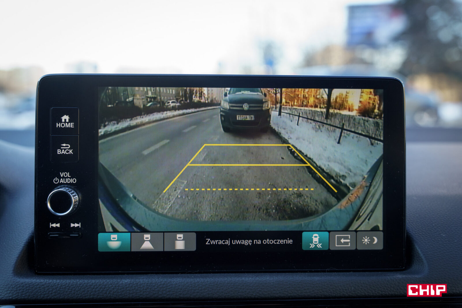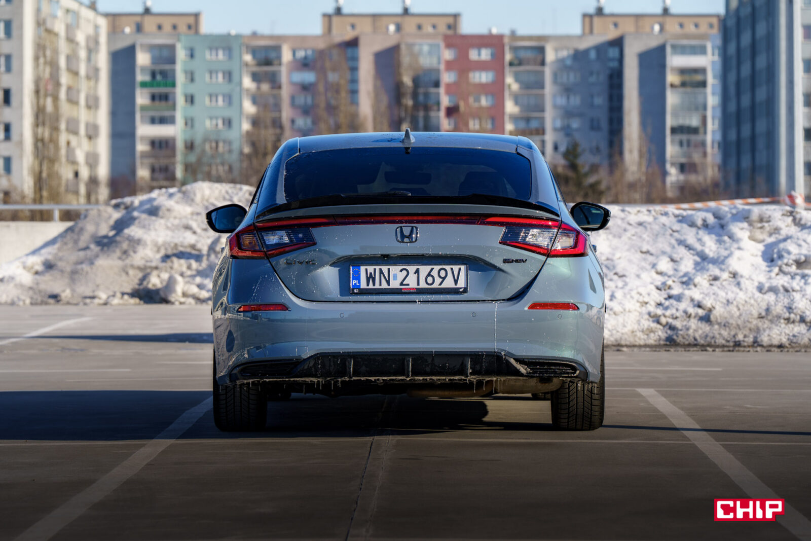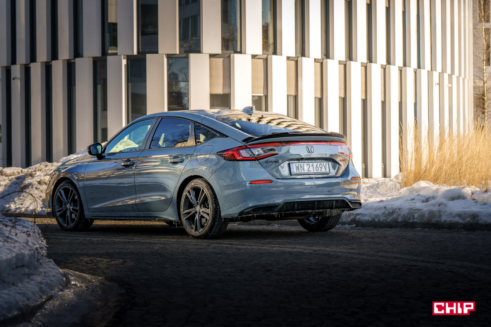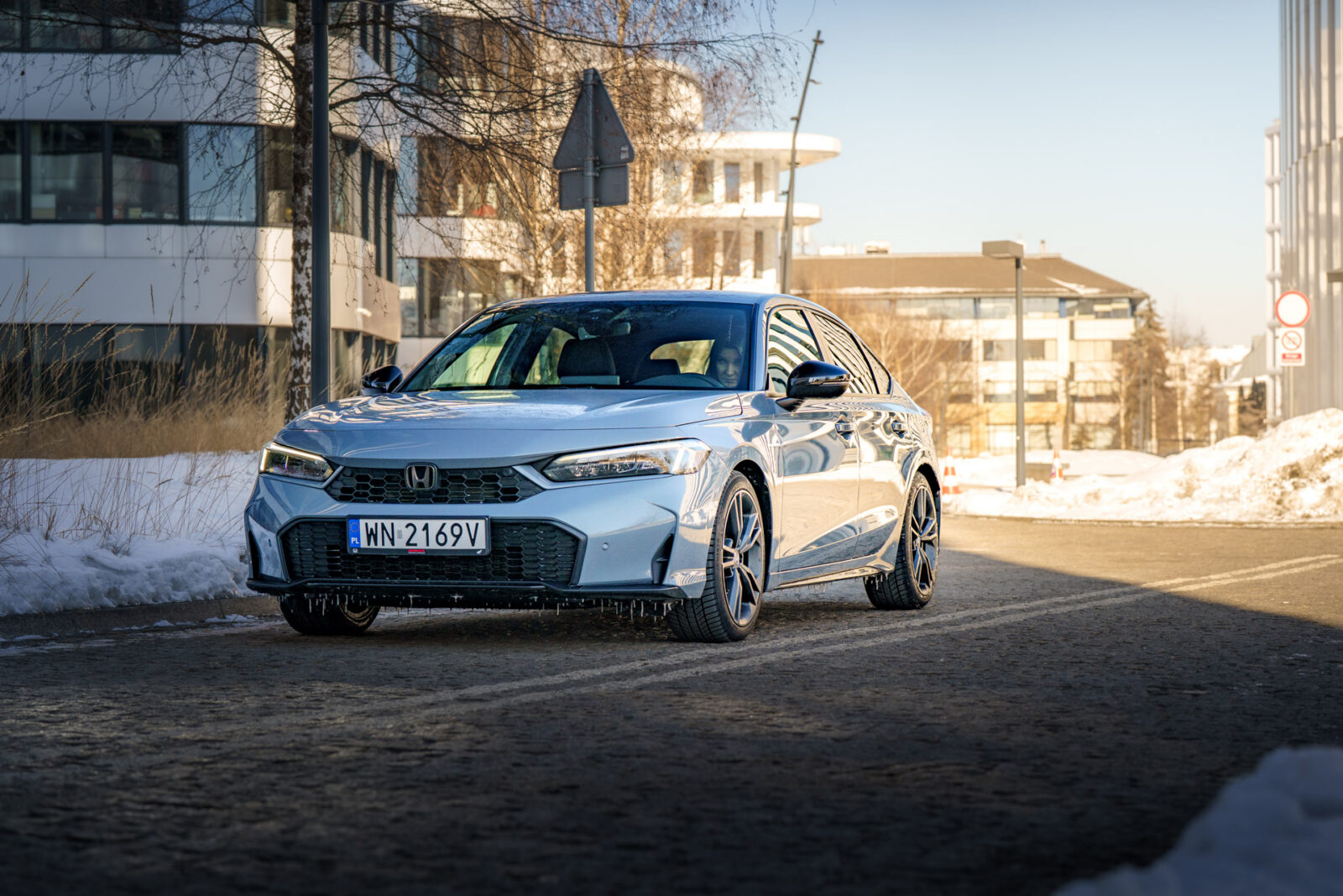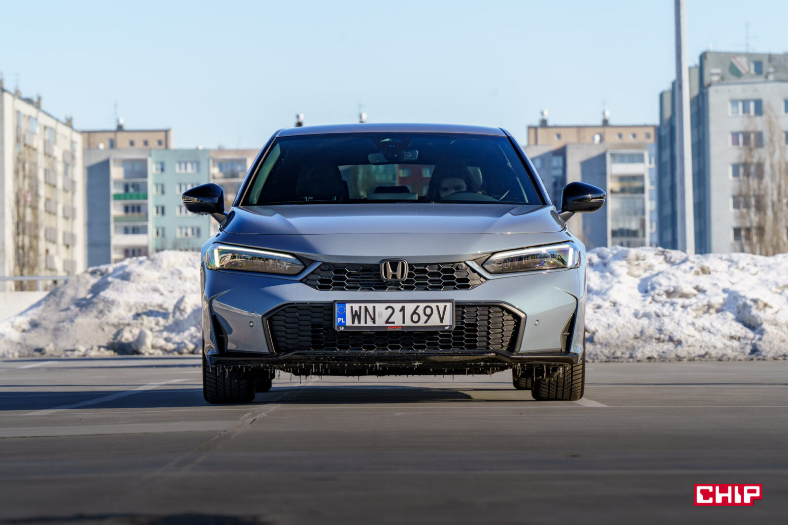 Układ hybrydowy Hondy jest jednym z lepszych, jakie widziałam. Przede wszystkim, jeżeli nie będziecie Civica katować, skrzynia biegów nie będzie nadmiernie hałasowała, co jest miłym zaskoczeniem, w szczególności biorąc pod uwagę to, że mamy do czynienia z e-CVT, a więc bezstopniową przekładnią, którą możemy spotkać w innych japońskich hybrydach. Jeżeli mówimy o miejskich prędkościach, również dynamika nie będzie stanowiła problemu. Układ hybrydowy Civica zawsze rusza na prądzie, więc pełny moment obrotowy silnika elektrycznego mamy już na „dzień dobry”. Dzięki temu auto ochoczo rusza spod świateł i zazwyczaj nie korzysta z silnika spalinowego do prędkości ok 40 km/h, więc jest całkiem dynamicznie i cicho. Jeśli dodamy do tego świetnie zestrojony układ monitorowania martwego pola i nieprzesadnie czuły system ostrzegania przed opuszczeniem pasa ruchu, auto w zasadzie odwala większość roboty za Was. Pilnuje sąsiadujących pasów i będzie Wam sygnalizowało, jeżeli manewr zmiany pasa/skrętu, nie jest w danym momencie najlepszym pomysłem.