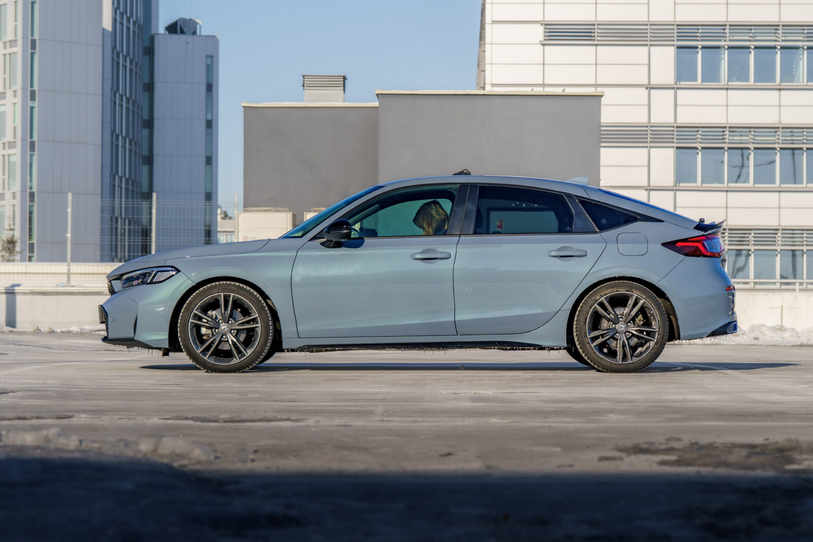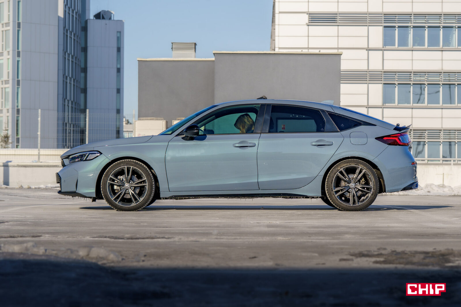 Z boku Honda Civic prezentuje się bardzo dobrze. Linia auta jest naprawdę piękna i tutaj widzimy kolejną nowość w postaci nowego wzoru 18-calowych felg dostępnych w wariancie Sport i Advance.