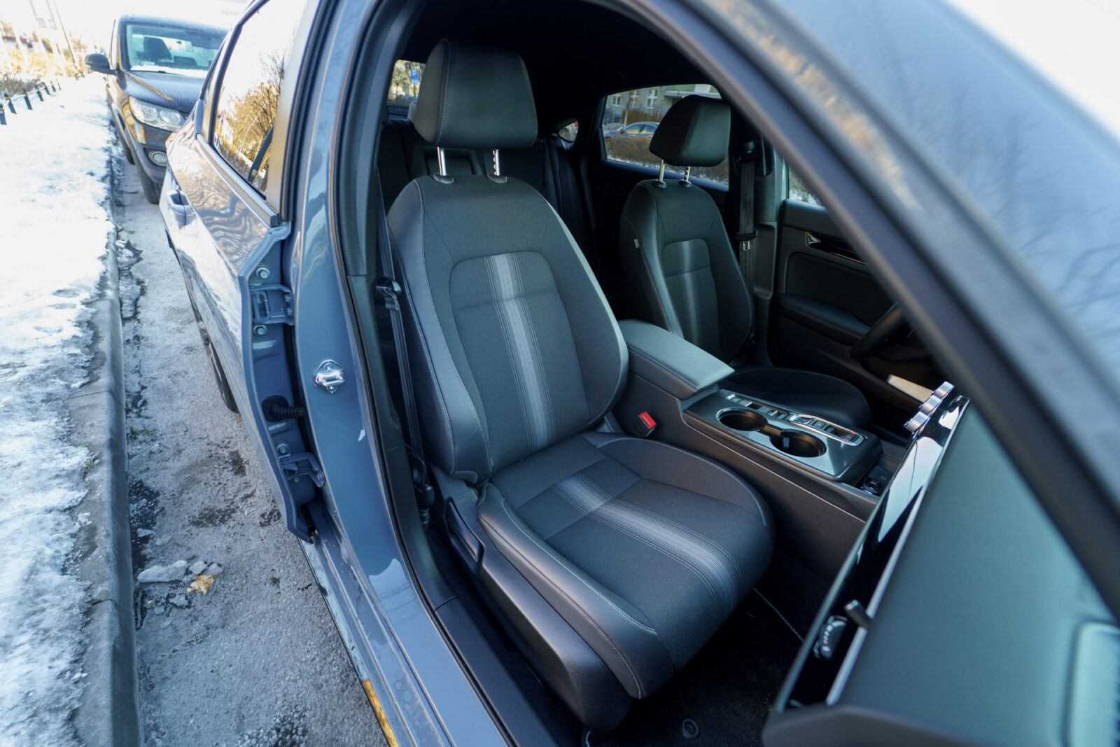 Fotele są bardzo klasyczne. Bez udziwnień, z osobnym zagłówkiem, ale też mocno wystającymi boczkami, dzięki czemu bardzo dobrze trzymają w zakrętach. Siedzi się tu bardzo komfortowo, nieprzesadnie nisko, niestety elektryczna regulacja obu foteli jest dostępna tylko w najwyższej wersji wyposażenia Advance, choć podgrzewane są już w wersji najniższej.