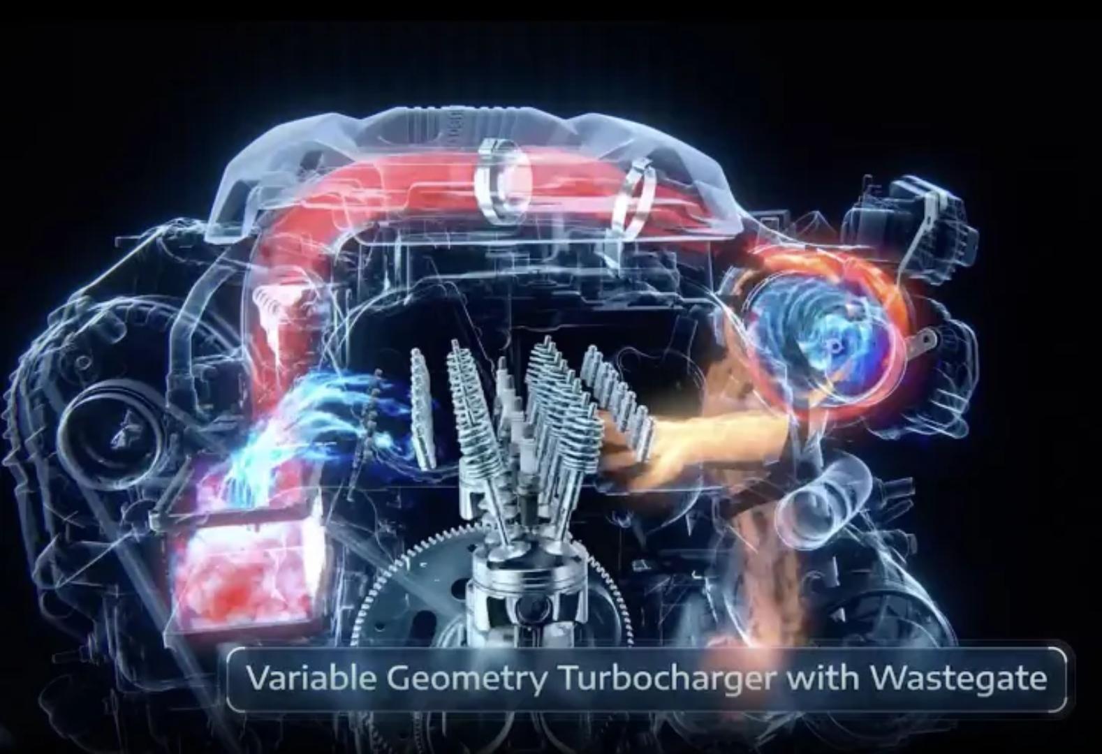 Drugim elementem, który wyróżnia silnik Hurricane 4, jest turbosprężarka o zmiennej geometrii (VGT). W dieslach to nic szokującego, ale w silnikach benzynowych (ze względu na temperatury spalin i obciążenie materiałowe) wciąż jest to rozwiązanie spotykane rzadko. Inżynierowie mieli zastosować układ zarządzania spalinami kierowany siłownikiem, który kontroluje, jak spaliny napędzają turbinę, co pozwala szybciej “rozkręcić” doładowanie po wciśnięciu gazu, a przy spokojnej jeździe lepiej zarządzać przepływem i sprawnością. Dodatek VGT na co dzień może pomagać w szybkim dogrzaniu katalizatora po zimnym starcie i w ogólnym zarządzaniu energią spalin.