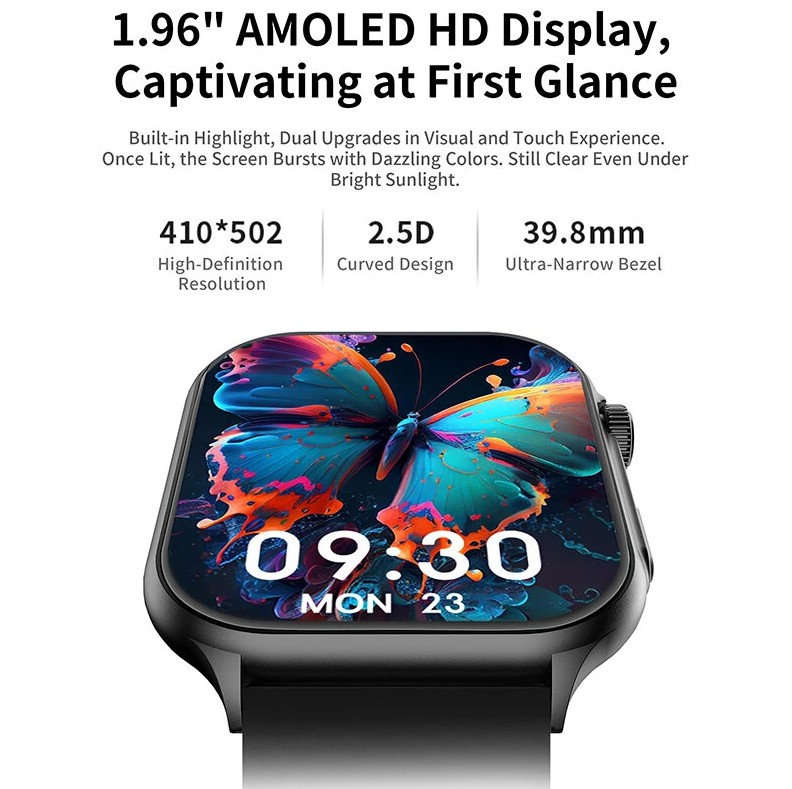- Duży, 1,96-calowy wyświetlacz typu AMOLED HD o rozdzielczości 410 x 502 pikseli.