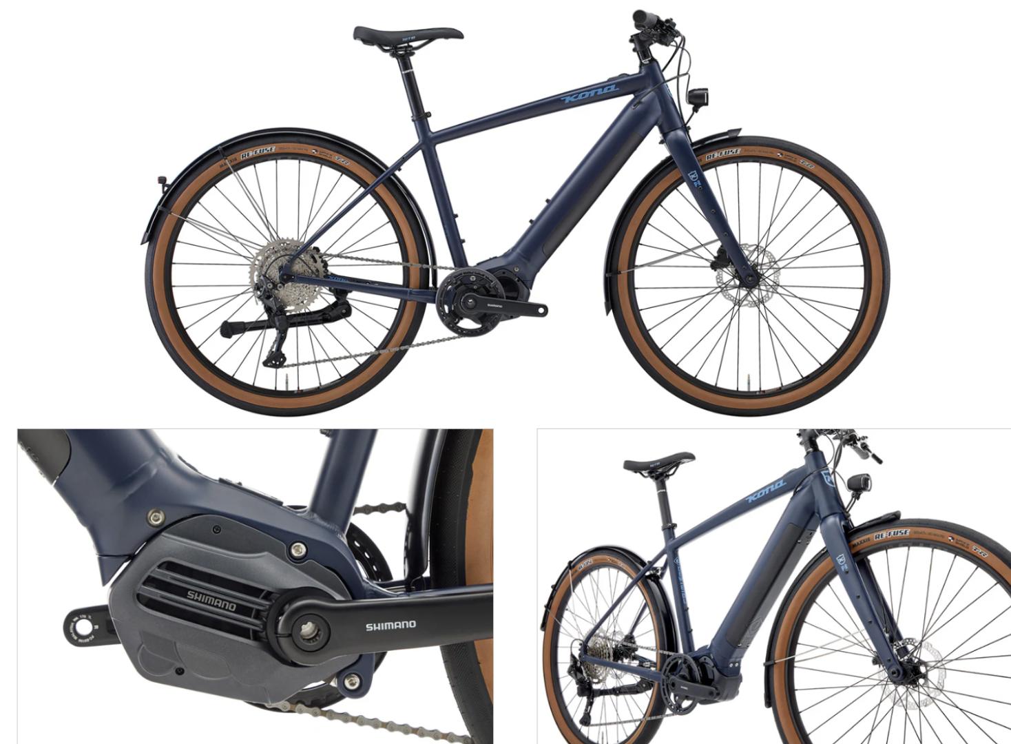 Elektryczna część oferty, czyli Dew-E, została zbudowana wokół tego samego zestawu napędowego Shimano. Kona używa jednostki EP5 z momentem obrotowym do 60 Nm, akumulatora 504 Wh częściowo zintegrowanego z dolną rurą i wyświetlacza Shimano EN600.