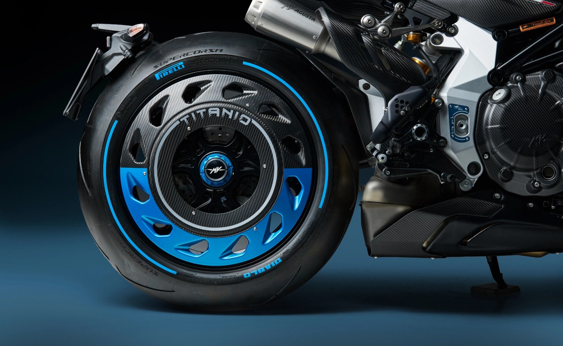 Nazwa Titanio nie jest pustym sloganem. MV Agusta sięgnęła po tytan przy produkcji szesnastu zaworów radialnych oraz czterech kutych korbowodów w silniku o pojemności 998 cm³. Ten wybór materiału pozwala na redukcję masy jednostki napędowej, co przekłada się na szybsze osiąganie wysokich obrotów, a to akurat cecha niezwykle istotna dla motocykla, którego poprzednia wersja generowała 205 koni mechanicznych i rozkręcała się aż do 13000 obr./min.