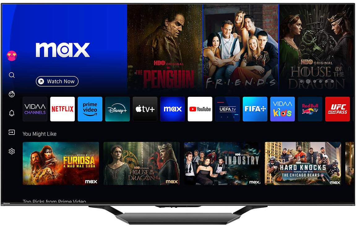 Telewizor podobny do TCL powyżej. Seria U7NQ jod Hisense jest kierowana do użytkowników, którzy szukają jasnego, dynamicznego obrazu i odświeżania w okolicach typowych dla monitorów gamingowych. Jeśli często oglądasz sport albo kanały z dużą liczbą dynamicznych ujęć, to jest właśnie ta kategoria telewizorów, która ma szansę dać Wam spokojniejszą głowę. Hisense stawia też na mocny HDR, więc seriale z Dolby Vision potrafią wyglądać bardzo efektownie, zwłaszcza wieczorem. System VIDAA jest szybki, ale warto upewnić się, że dostępne będą wszystkie aplikacje, które faktycznie używsz na co dzień, bo ekosystem jest węższy niż w Google TV.