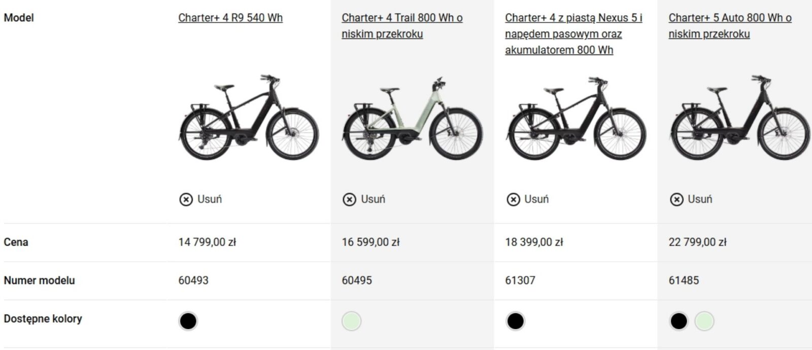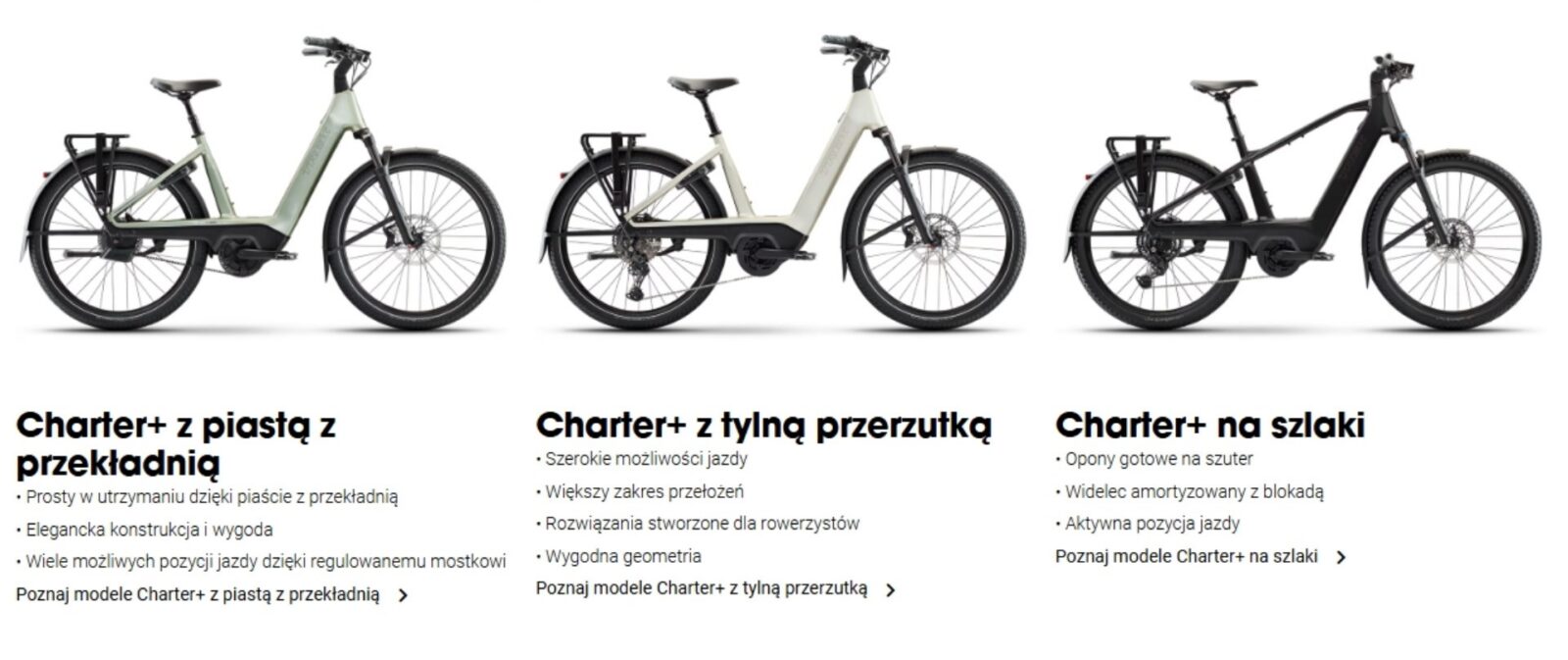W okolicach 17 899 zł i 19 699 zł zaczynają się już konfiguracje Charter+ 4 z paskiem i piastą Enviolo, odpowiednio dla 540 Wh i 800 Wh, a na szczycie cennika stoją wersje Charter+ 5 Auto – 20 999 zł z akumulatorem o pojemności 540 Wh oraz 22 799 zł z podbitą pojemnością do 800 Wh.