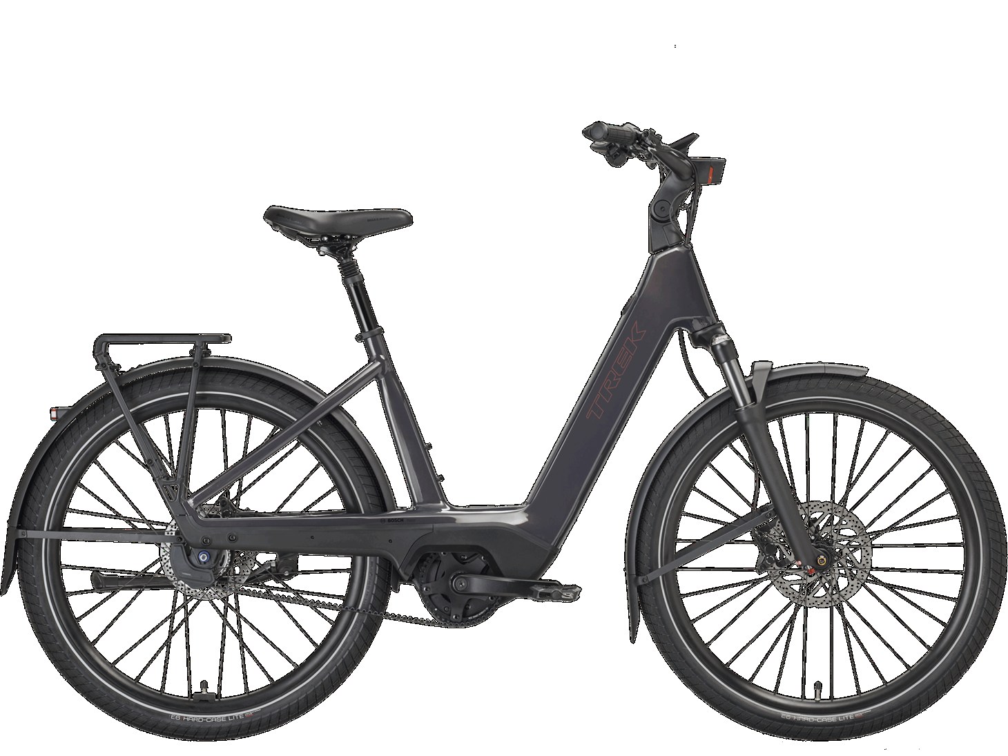 Osobny wątek to Charter+ w wersji “na szlaki”. Trek opisuje ten model jako gotowy na szuter, co ma gwarantować amortyzowany widelec z blokadą i bardziej aktywna pozycja rowerzysty. To ciekawy kierunek, bo wiele “miejskich” e-bike ogranicza swoją przygodę na równym asfalcie, a tu dostajemy sygnał, że możemy zjechać na gorszą nawierzchnię bez poczucia, że rower zaraz zacznie protestować.