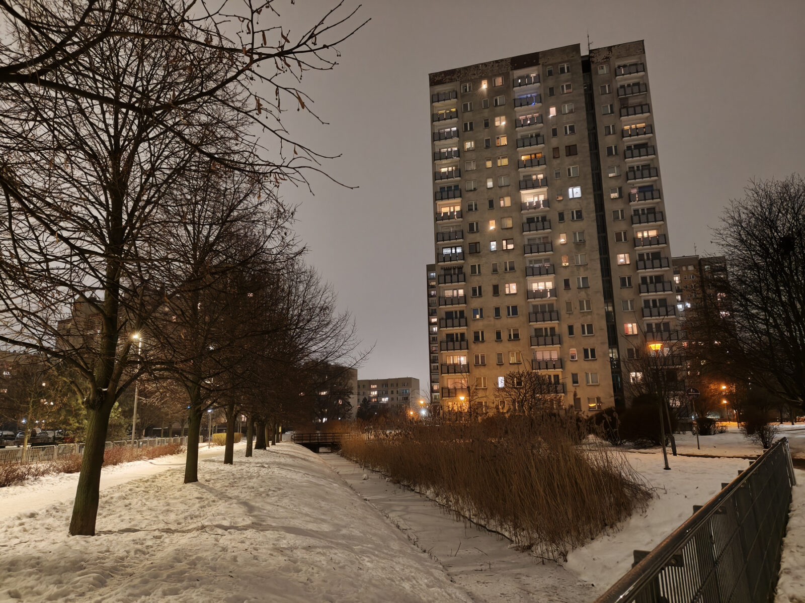 Szeroki kąt w smartfonach od lat się w zasadzie nie zmienia i nie inaczej jest w Reno15 Pro. Kadry są efektownie szerokie, ale niewiele jest tu szczegółów, a braki w ostrości na brzegach kadru są wyraźnie widoczne. Choć póki nie uruchamiamy tego na dużym ekranie – jest bardzo przyzwoicie. Największym problemem tego typu jest balans bieli. Kolory nie są takie same, jak w przypadku aparatu głównego, co widać szczególnie na zimowych kadrach i śnieg robi się tu nieprzyjemnie żółty i wcale nie wynika to… z powodów, z których śnieg na ogół robi się żółty.