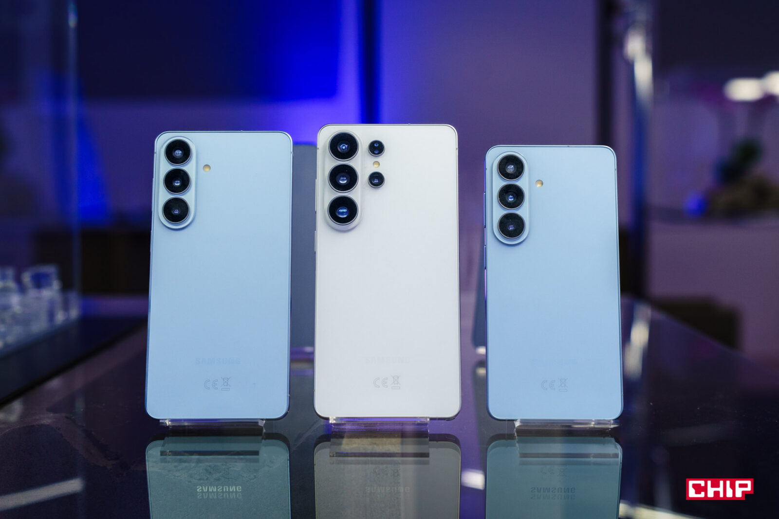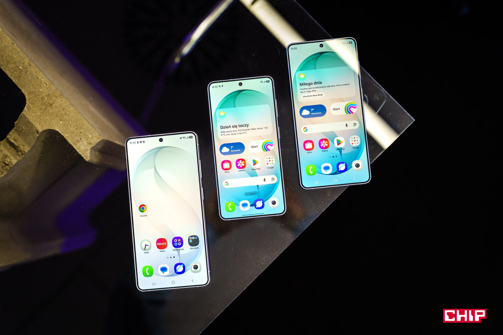 Bez konkretnego wskazania, na zdjęciach trudno powiedzieć, który jest który. Więc tłumacząc to łopatologicznie – Galaxy S26 to ten mniejszy, Galaxy S26+ to ten wyglądający tak samo, tylko większy, a od Galaxy S26 Ultra odróżnia je mniejsza liczba aparatów. Głównie tak trzeba je rozpatrywać, bo cała trójka jest dostępna w takich samych kolorach – fioletowym, jasnoniebieskim, czarnym i białym.