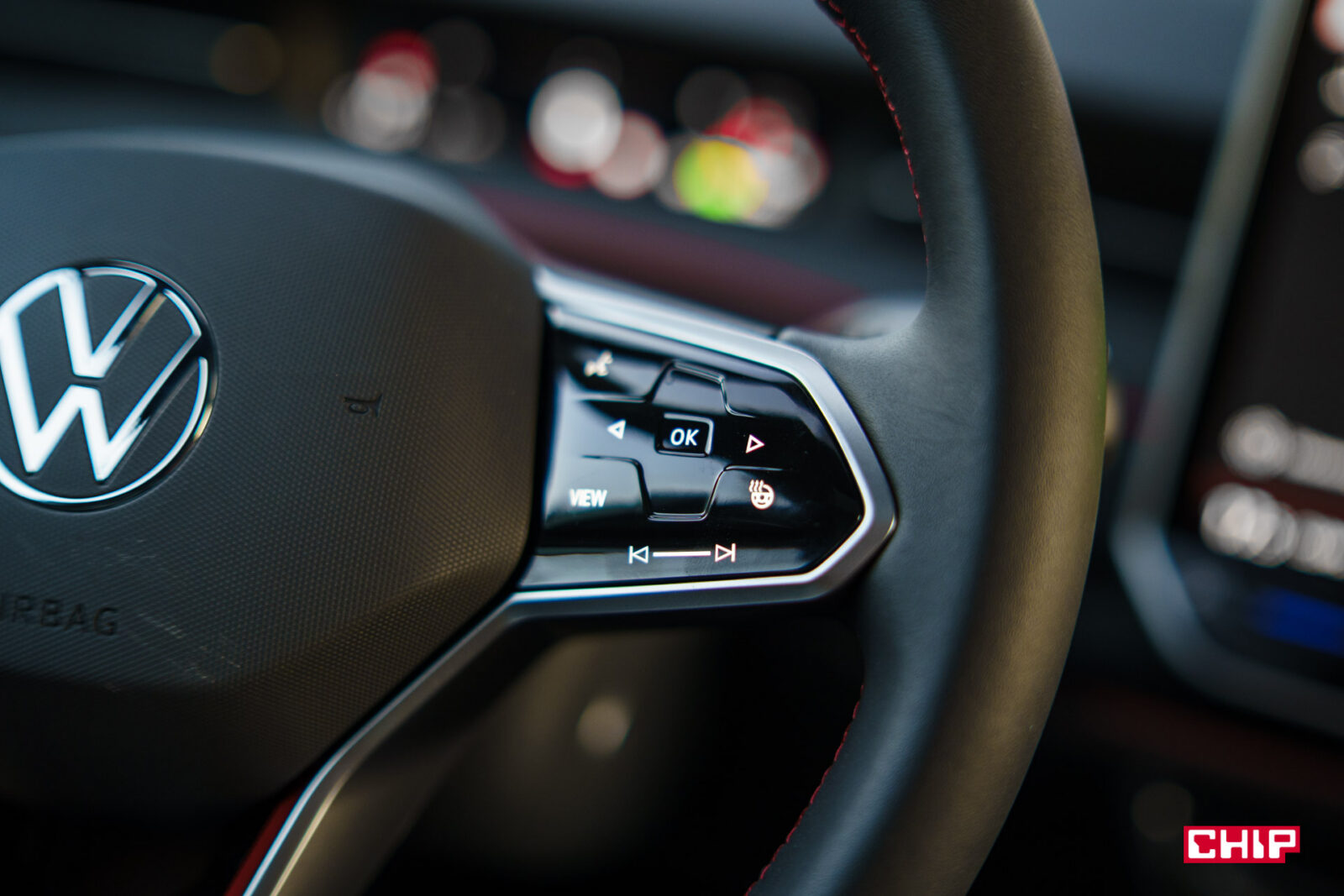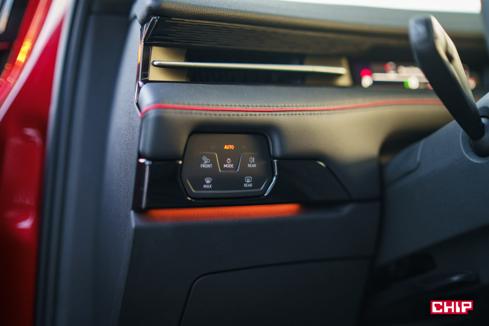 Volkswagen nie byłby sobą, który zrezygnował z błyszczącego plastiku, więc tak, jest on obecny, ale jak na Volkswagena jest to zaskakująco mało. Poza wspomnianymi, podświetlanymi listwami znajdziemy go na obramowaniu schowków tunelu środkowego.
