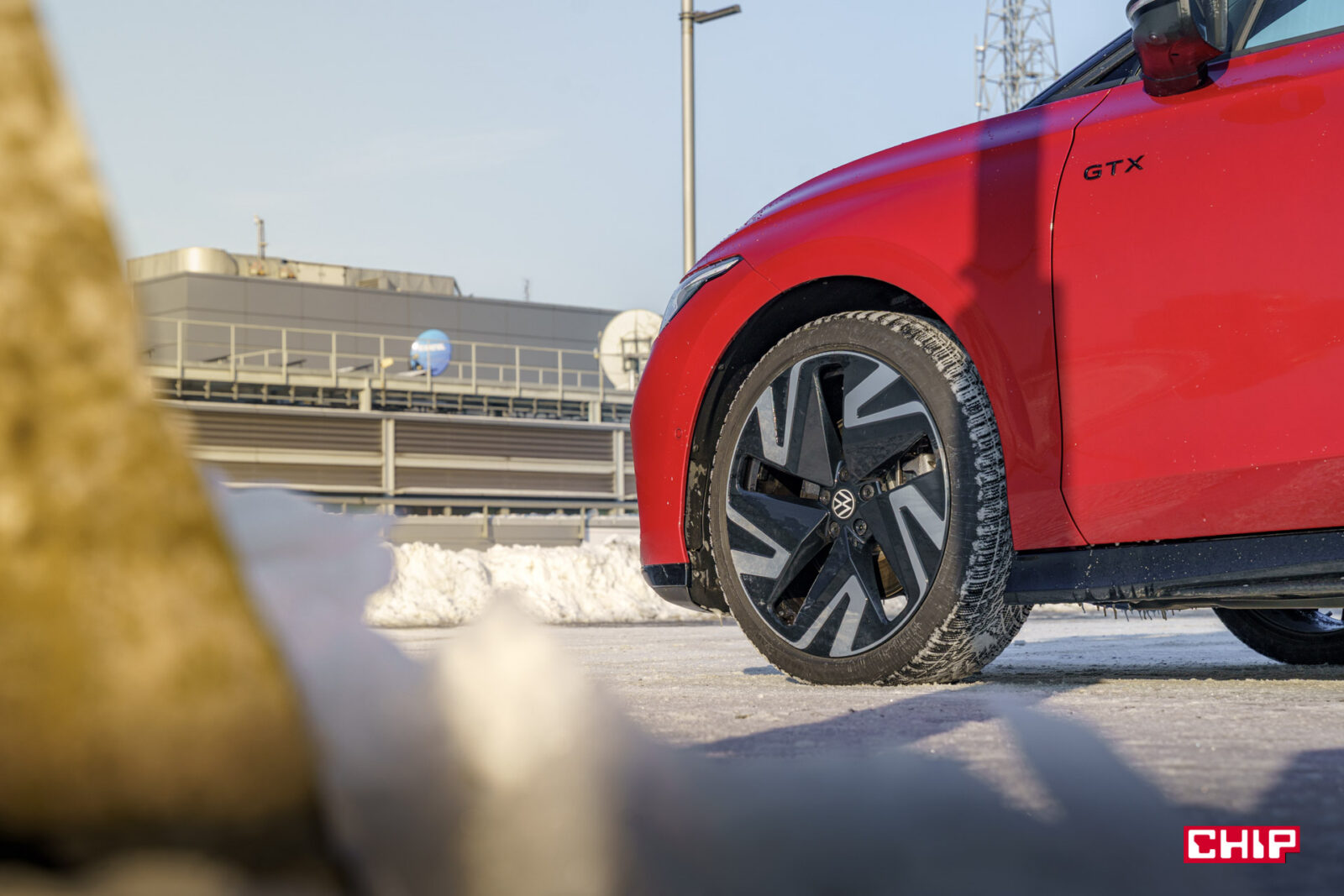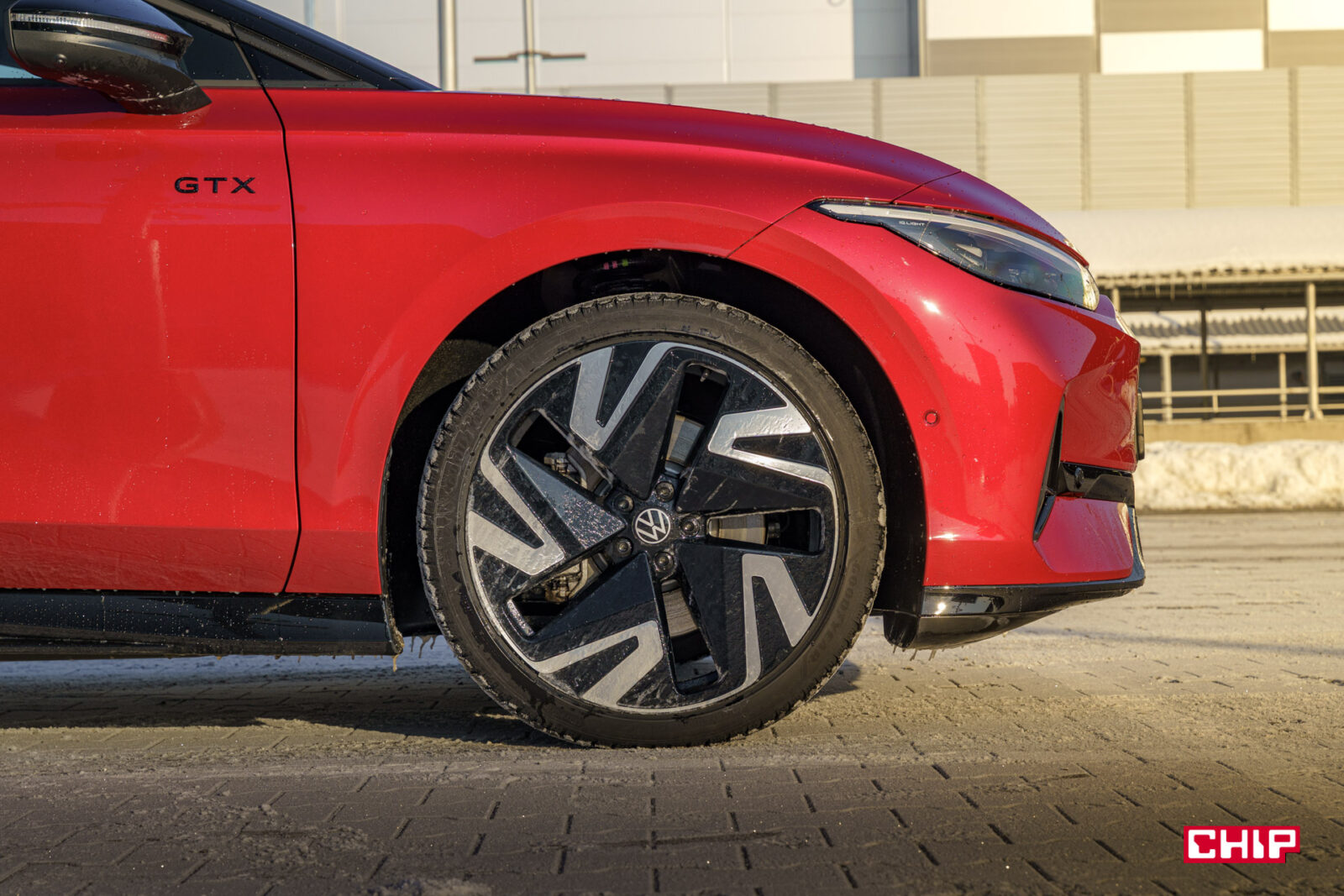Jak widzicie, GTX jest nie tylko szybszy, ma również to, na za co dziękowałam niebiosom podczas testu – napęd na wszystkie koła. Ponieważ mamy tutaj do czynienia z elektrykiem, konstrukcja napędu różni się znacznie od tego, co możemy spotkać w spalinowych Volkswagenach z napędem 4MOTION. Nie będziemy wdawać się w szczegóły techniczne i wymieniać różnic pomiędzy poszczególnymi komponentami tego napędu, bo to nie strona pasjonatów mechaniki pojazdowej, ale warto zaznaczyć, że napęd tej jest regulowany wyłącznie elektrycznie. Auto preferuje jazdę z napędem na tył, a przód dołącza, jeżeli zajdzie taka potrzeba, np. przy dynamicznym wejściu w zakręt, podczas ruszania po śliskiej nawierzchni, po wykryciu poślizgu etc.