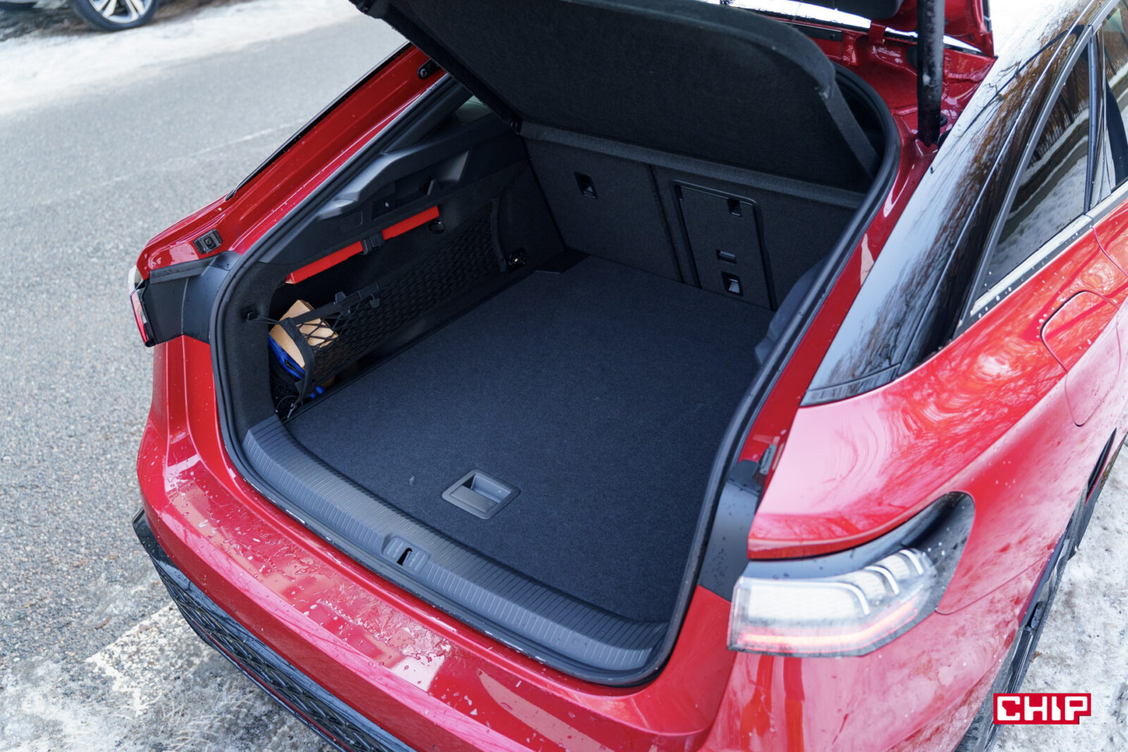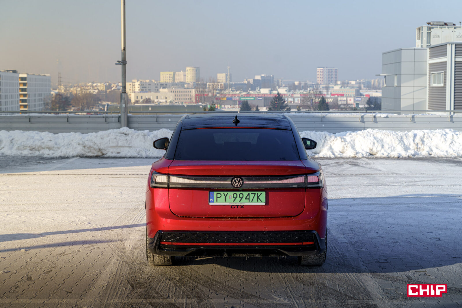 Podobnie z tyłu, gdzie wariant GTX dodaje dyfuzor z siatką plastra miodu, listwę świetlną oraz podświetlane logo. Wszystko to wygląda naprawdę dobrze. Jest co prawda mniej aerodynamicznie, co przekłada się na minimalnie niższy zasięg. Choć jak się zaraz przekonacie, zimą to wcale nie robi dużej różnicy.