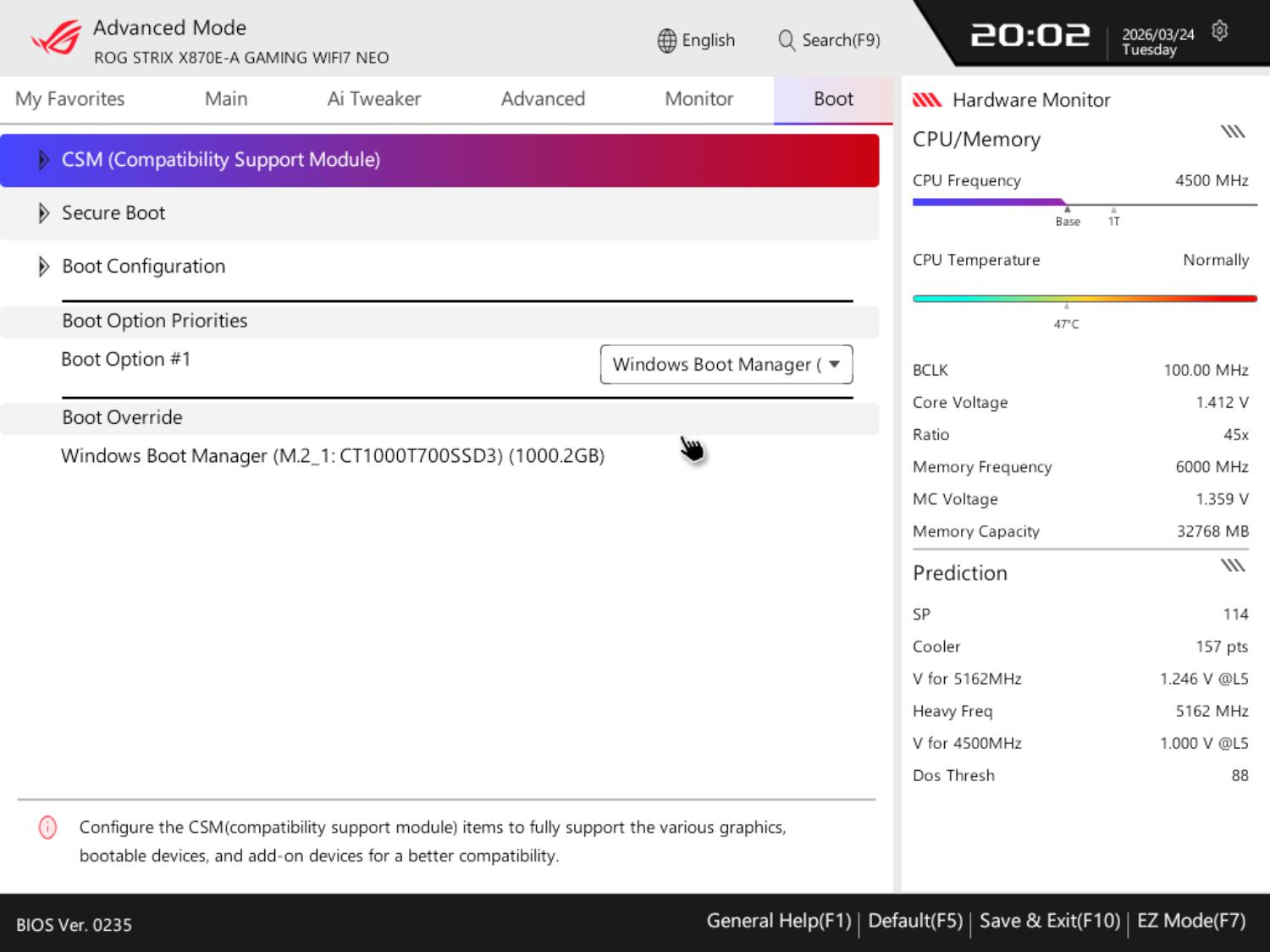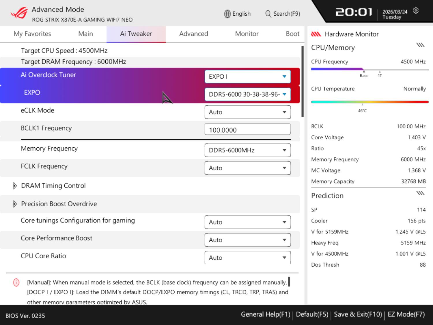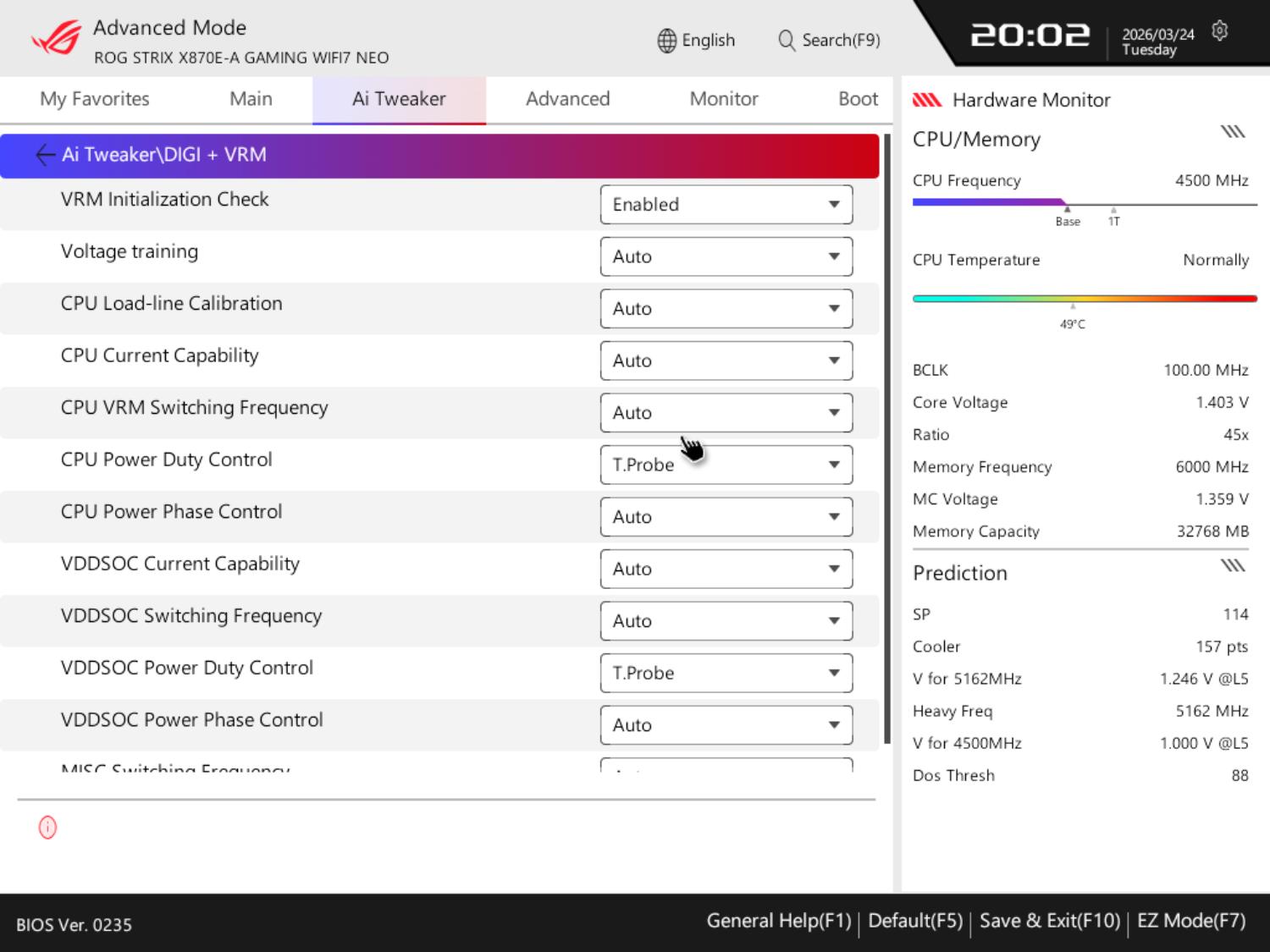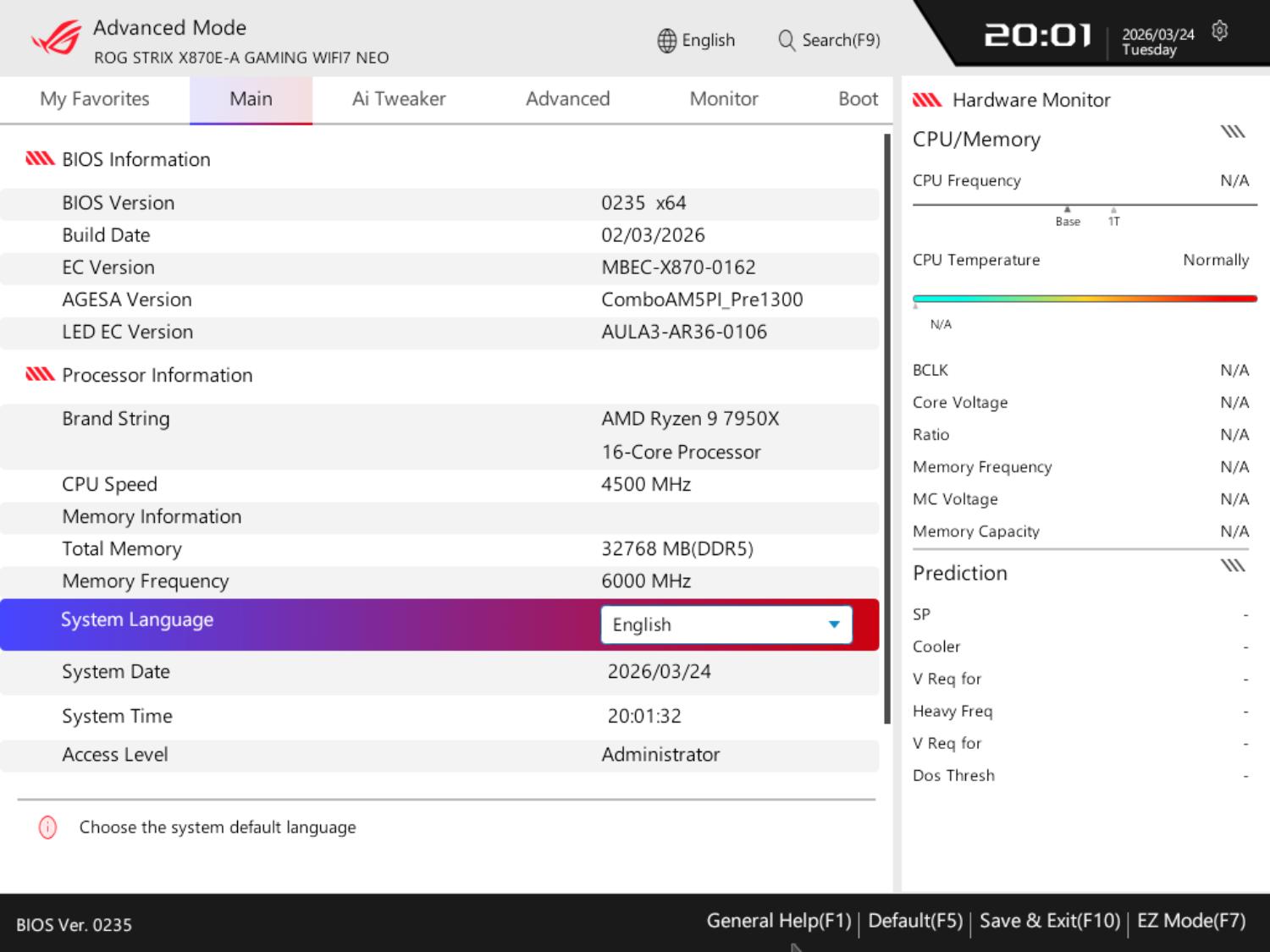 BIOS Asus ROG Strix X870E-A Gaming WiFi7 Neo
